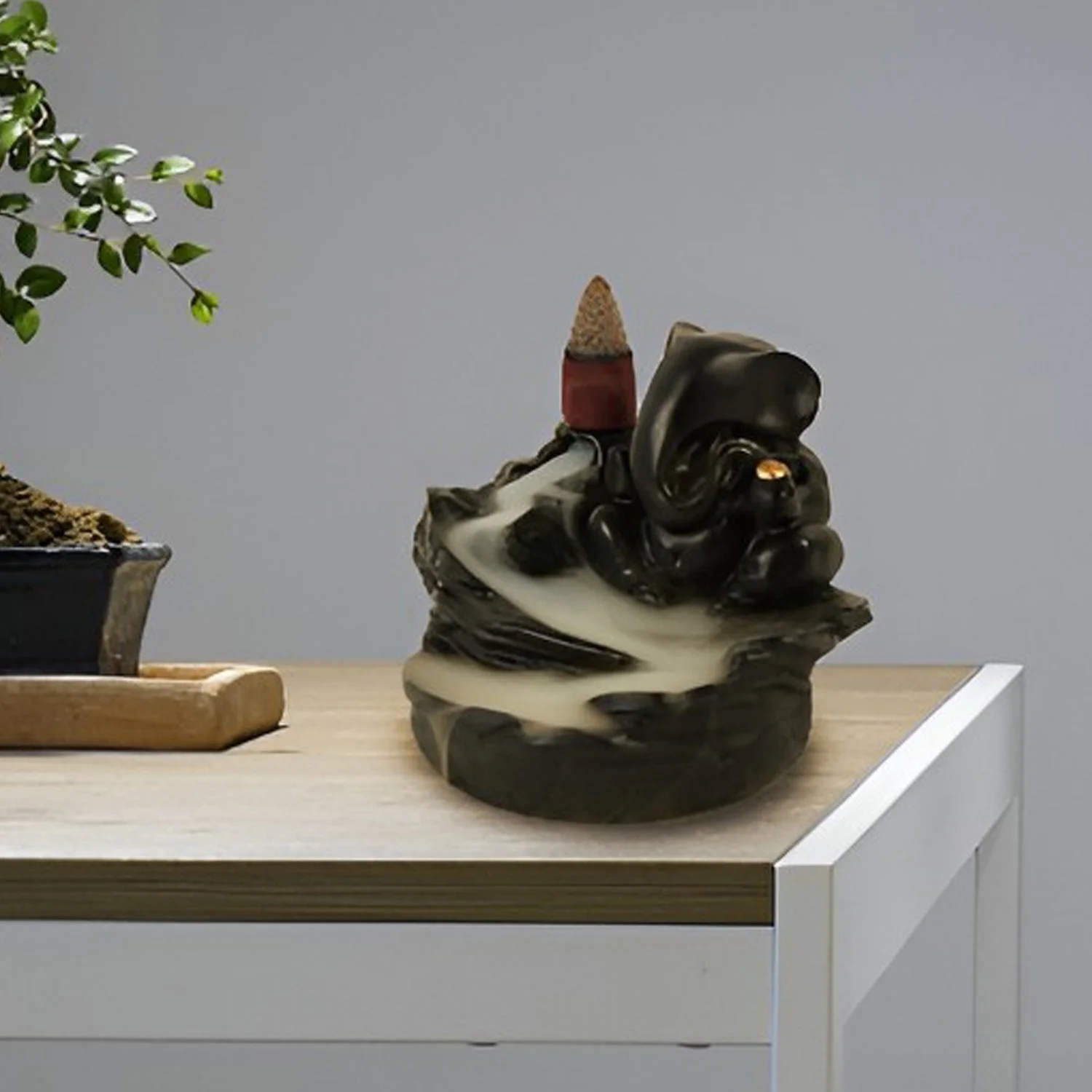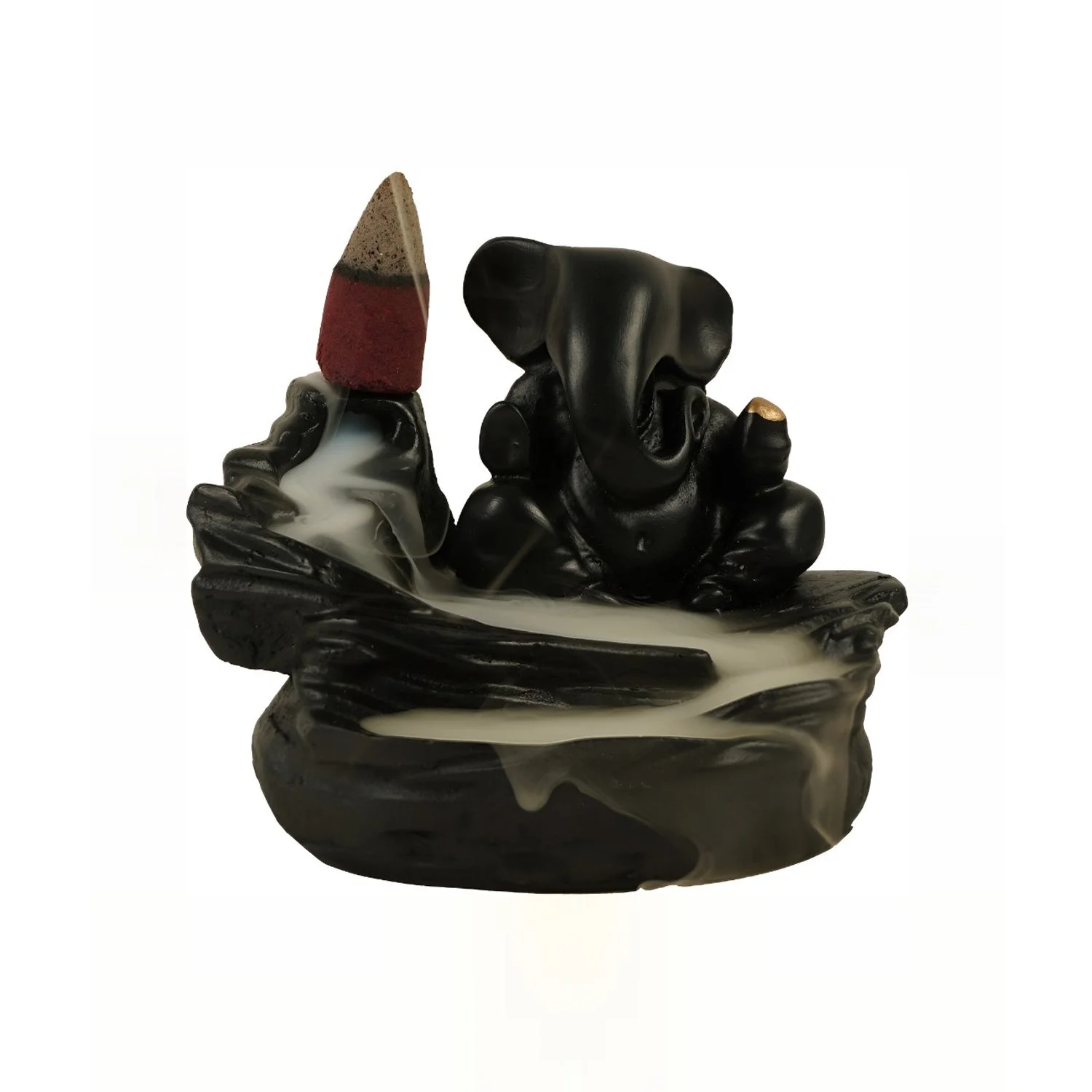 Smoke Fountain Ganesha Idol Decoration Items for Home Decor | Diwali Gifts / Ganesh Chaturthi / Car Dash Board / Ganesh Murti / Ganpati Statue Showpiece Backflow Smoke Fountain Incense Holder Burner with 8 Pc Backflow Incense Cones Sticks (1 pc)