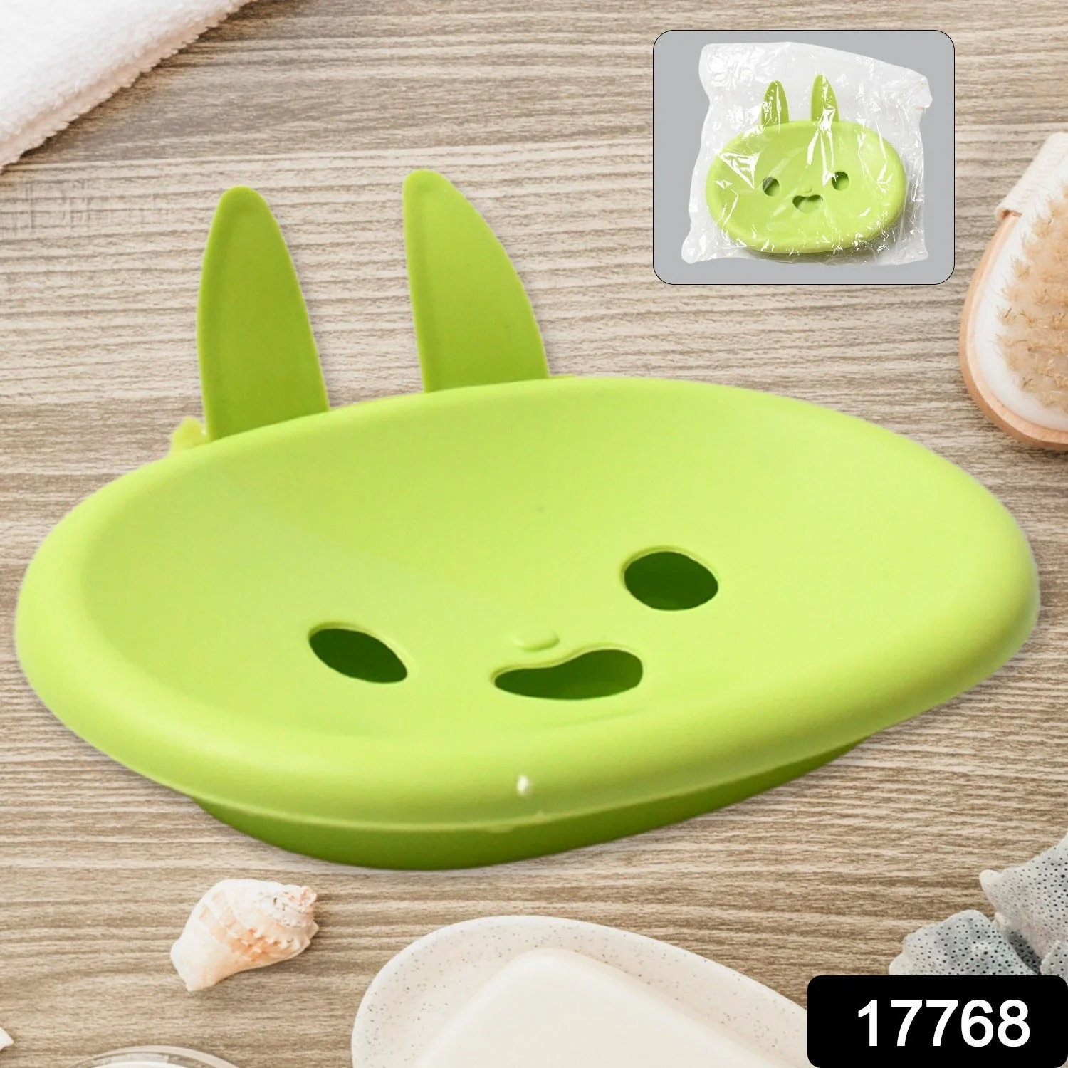 17768 Soap Box Drain soap Box Cute Rabbit Shape Double soap Bowl Box Plastic Rack Storage Rack Bathroom Toilet Storage Box