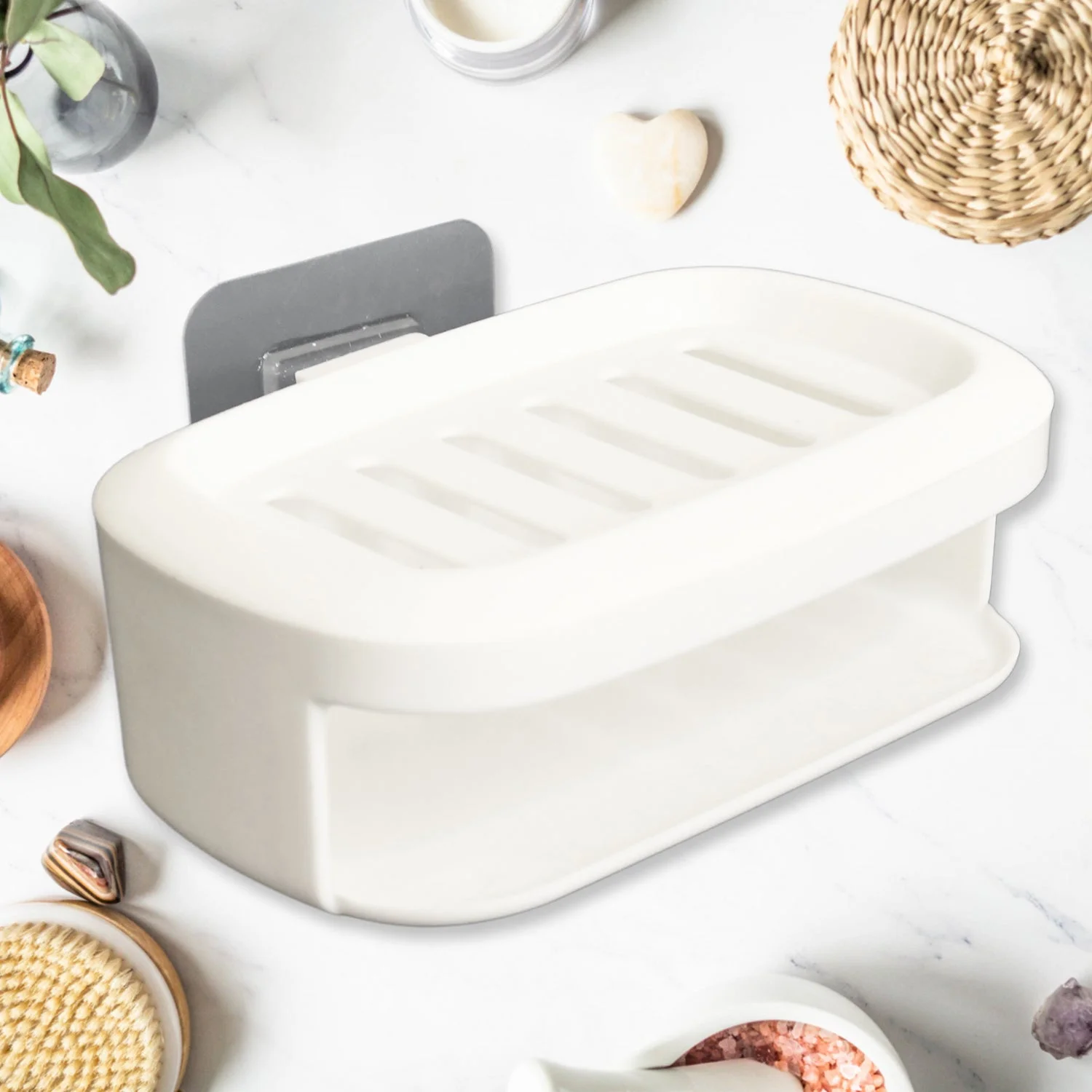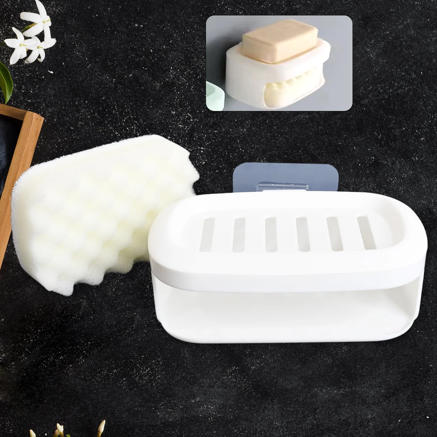 Wall Mounted Soap Holder Thickened Plastic Drain Soap Box With Sponge Dual-use Soap Holder (2 Pc Set / With Adhesive Hook)