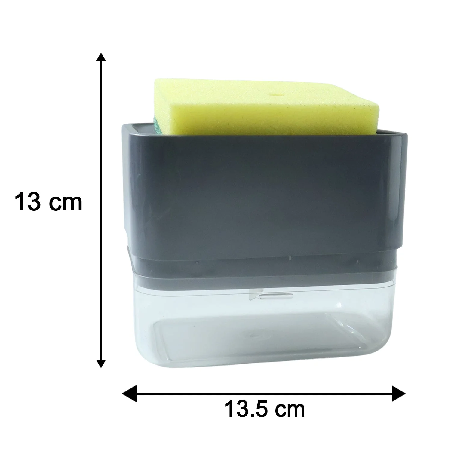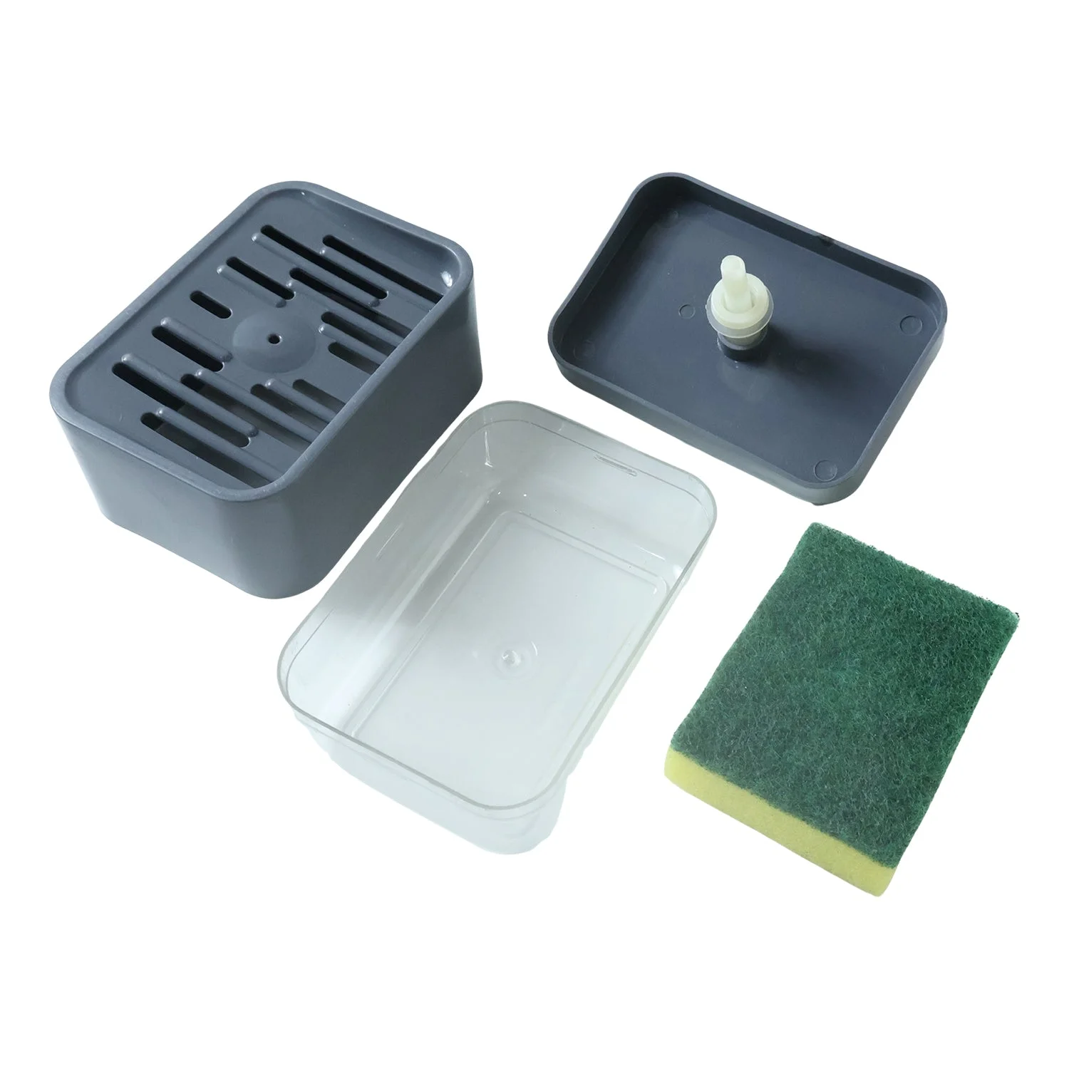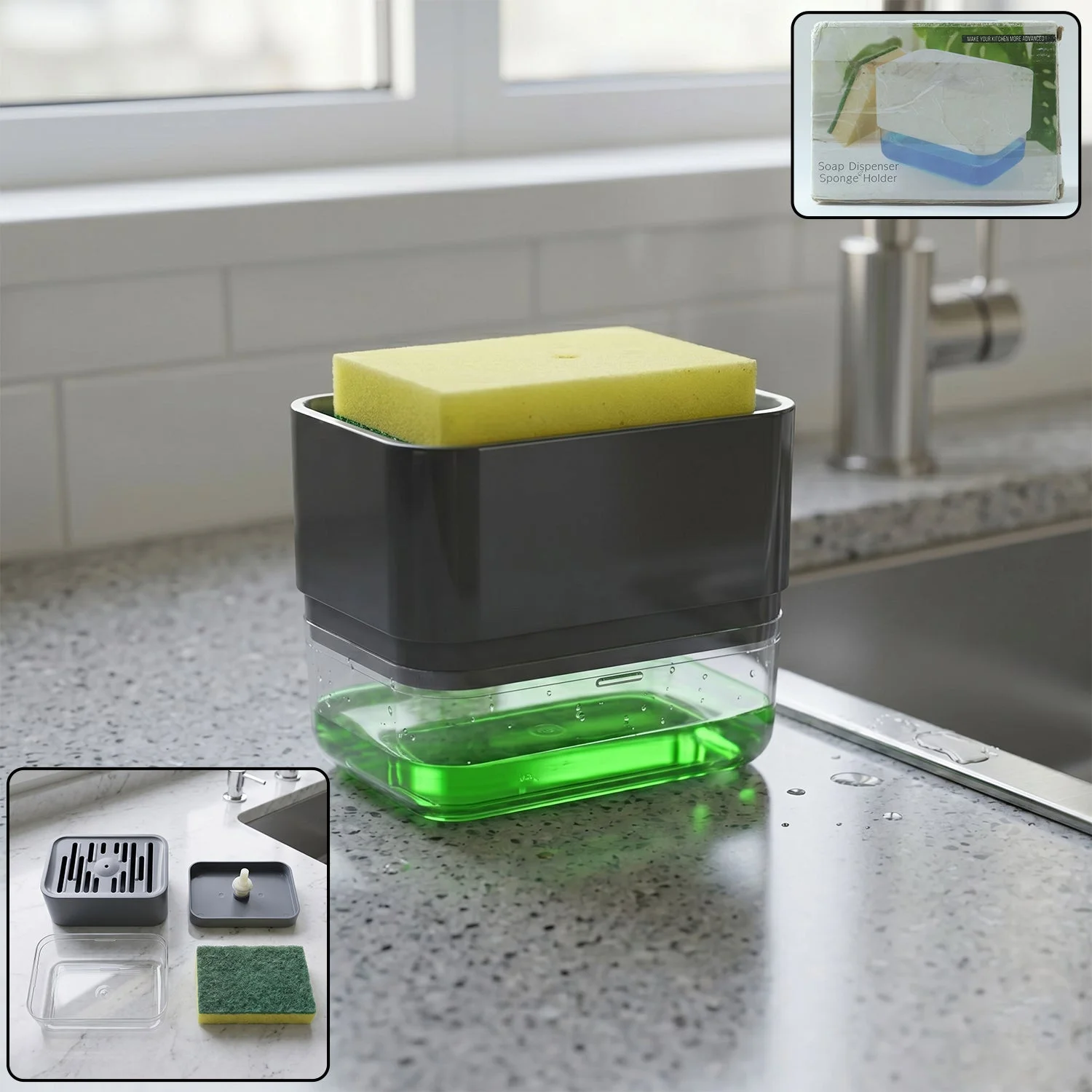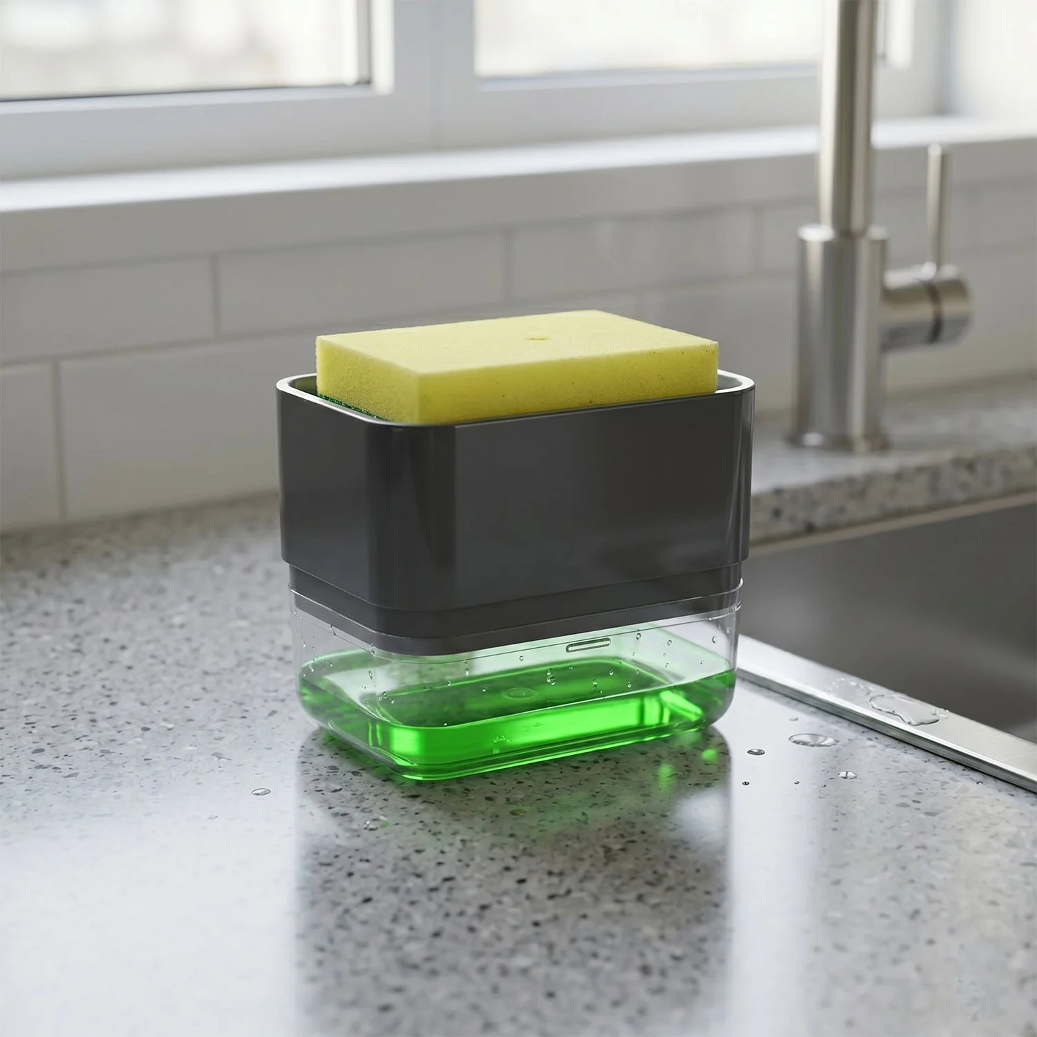 Keep your sink area organized with this practical soap dispenser set. This kitchen soap dispenser comes with a built-in sponge holder, making it a perfect sink organizer for daily cleaning needs.
