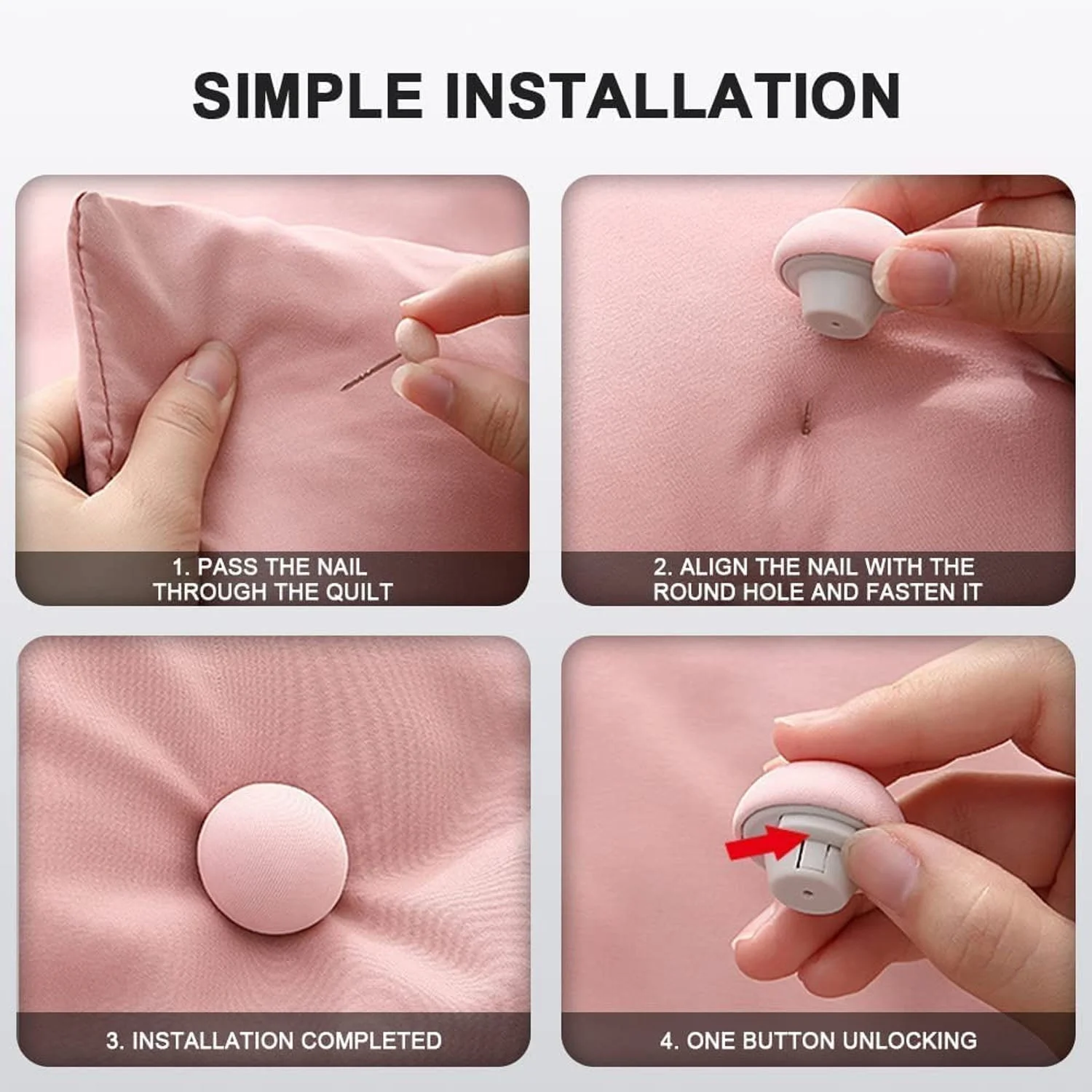 The soft duvet button clip is a smart and gentle solution to keep your duvet, comforter, or blanket securely in place without sewing, pins, or damage to fabric. Designed with a smooth fabric-covered surface and a strong internal locking mechanism, it prevents duvet movement while maintaining comfort during sleep. Easy to attach and remove, this button-style clip ensures your bedding stays neat, aligned, and comfortable all night long, making it ideal for everyday home use.