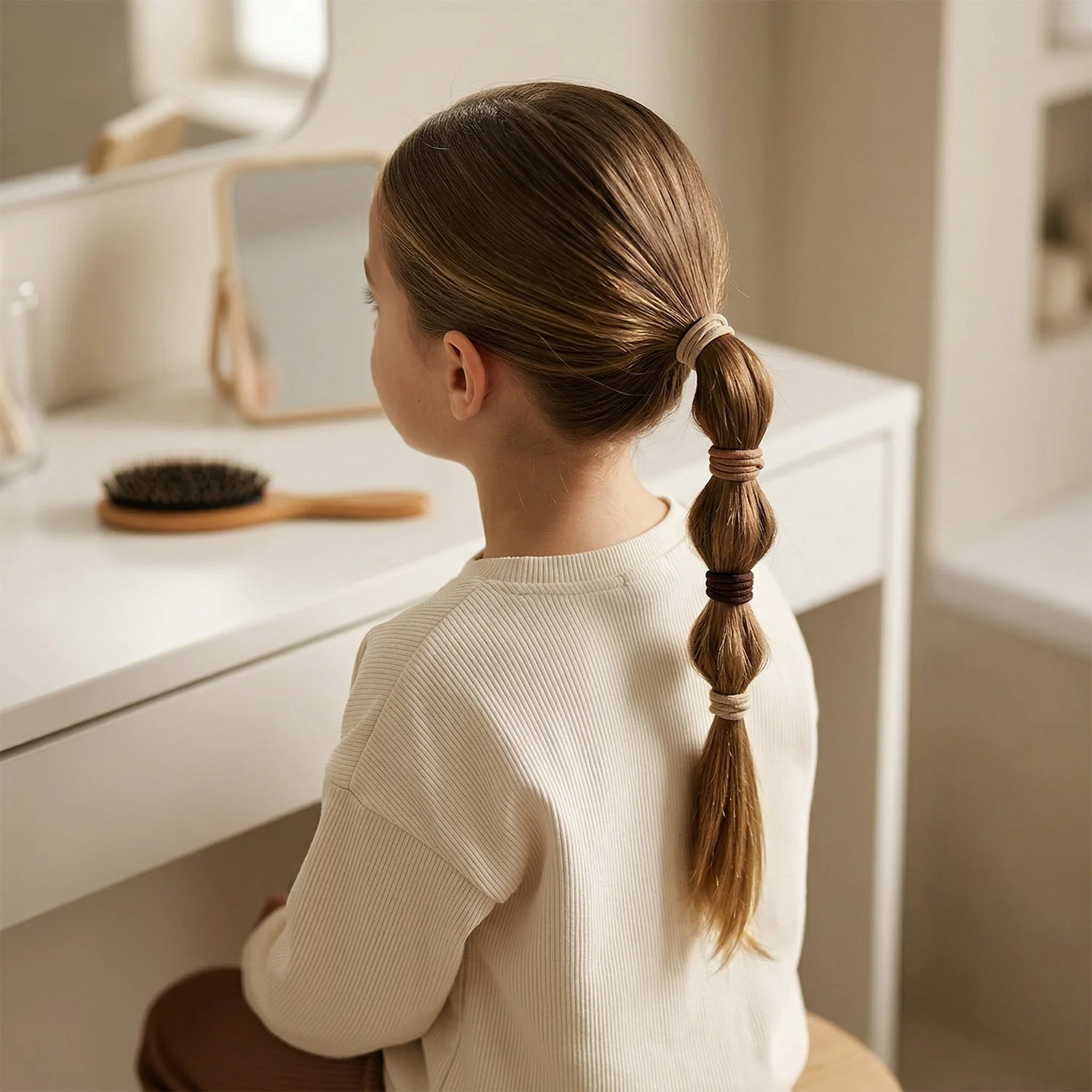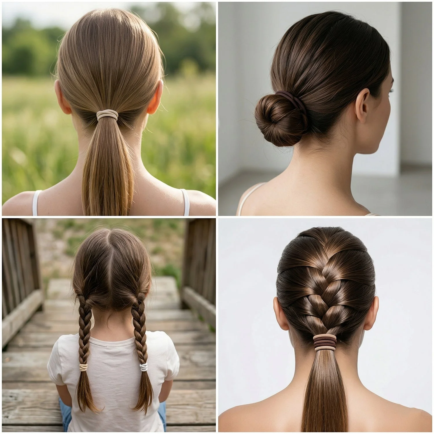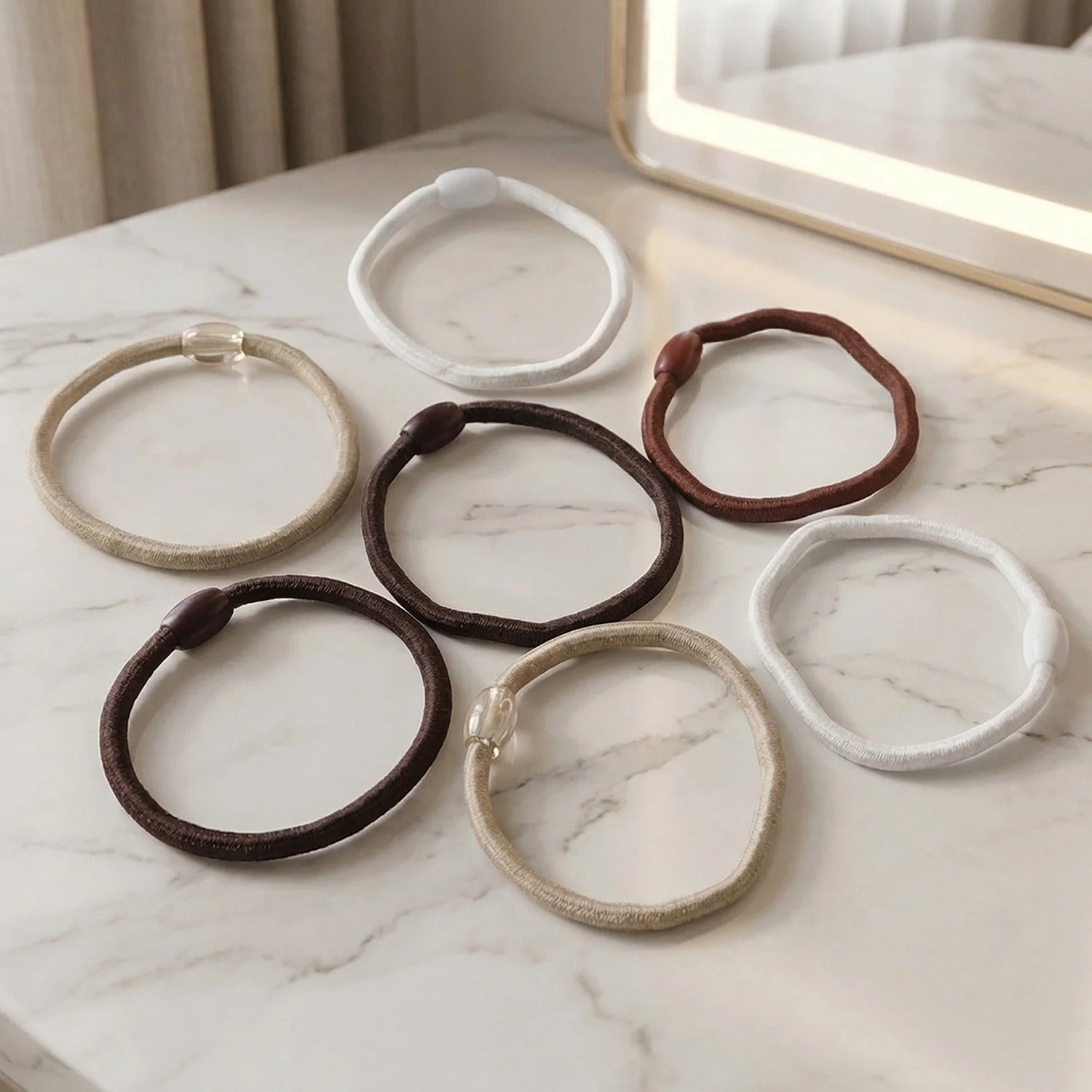This set of soft elastic hair rubber bands is designed to provide a secure and comfortable hold for all types of hairstyles. Made with flexible and stretchable material, these bands offer strong grip without pulling or damaging the hair. The smooth outer texture ensures tangle-free use, making them perfect for daily styling. Ideal for ponytails, braids, buns, and creative hairstyles, these hair ties combine durability with comfort. With a mix of neutral and stylish colors, they are suitable for both casual and formal use.