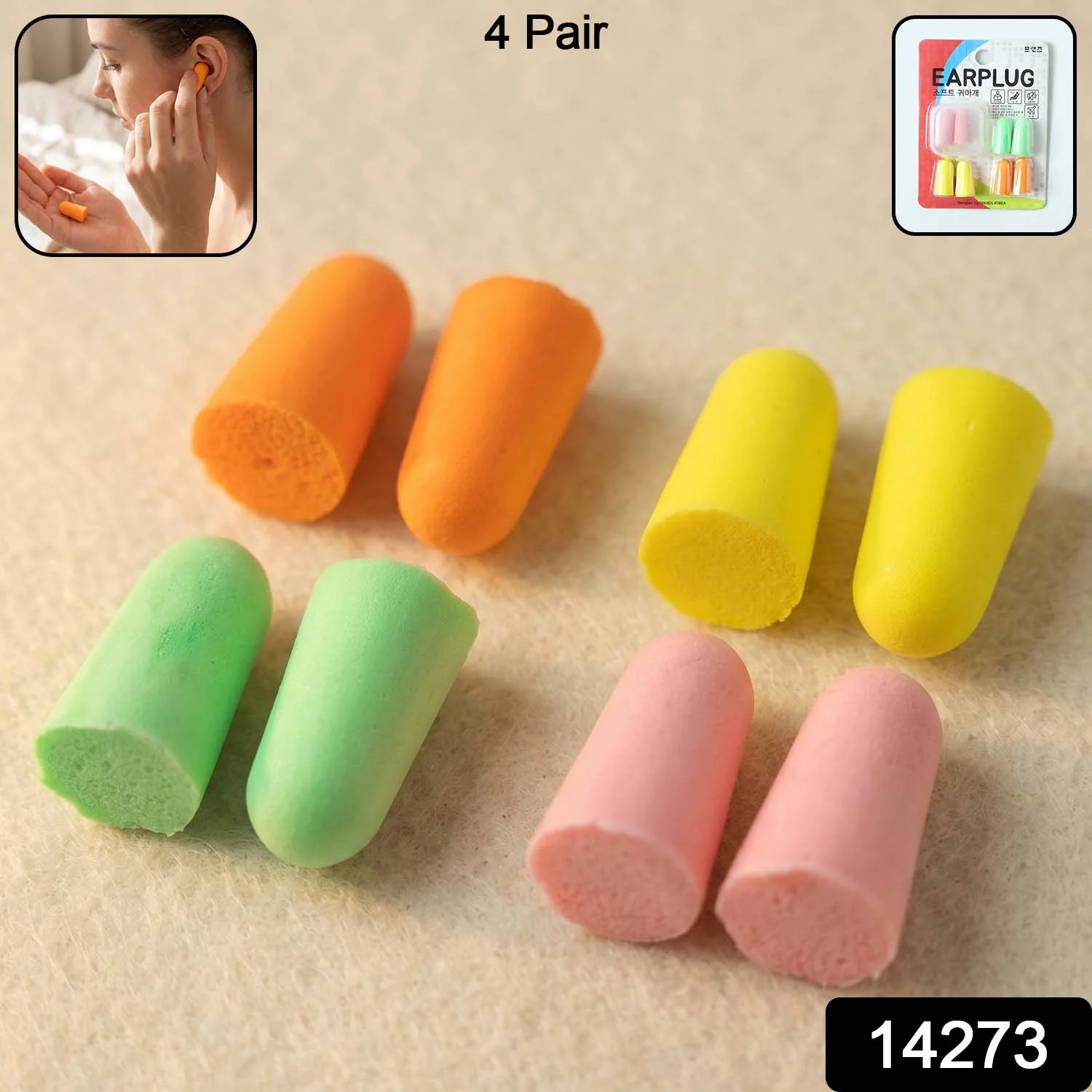 Soft Foam Earplugs 4 Pair for Noise Reduction, Comfortable Fit for Sleeping, Studying, and Travel - Multi-Color Pack