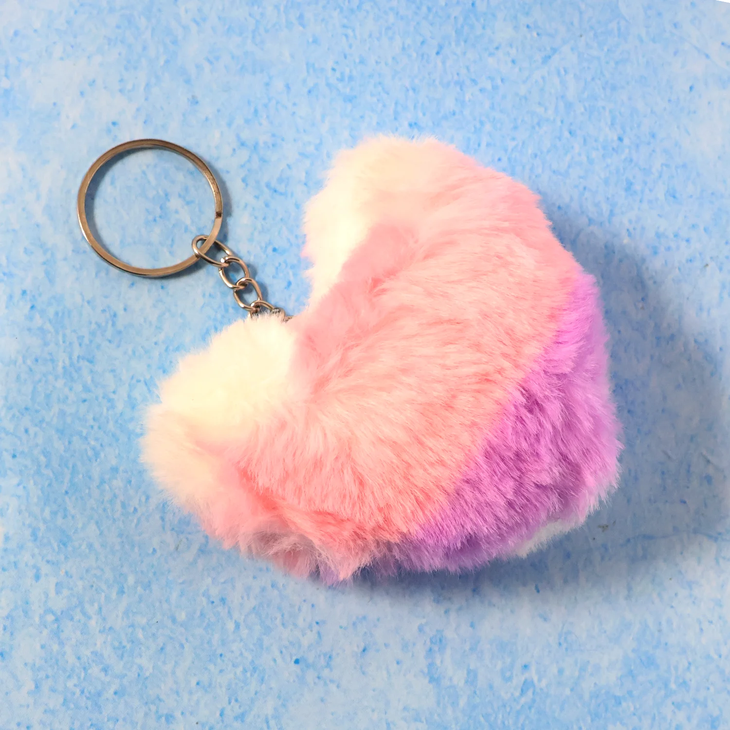 The Heart Keychain is a stylish and charming accessory made from soft plush fabric. Designed in a lovely heart shape with a mix of soft pink and purple colors, this keychain adds a touch of fun and color to your bags, key rings, or other accessories. Its fluffy texture and compact design make it a delightful item that is both functional and fashionable. Whether you want to personalize your keys or give a cute gift, this heart keychain is a perfect choice for adding some cheer to everyday items.