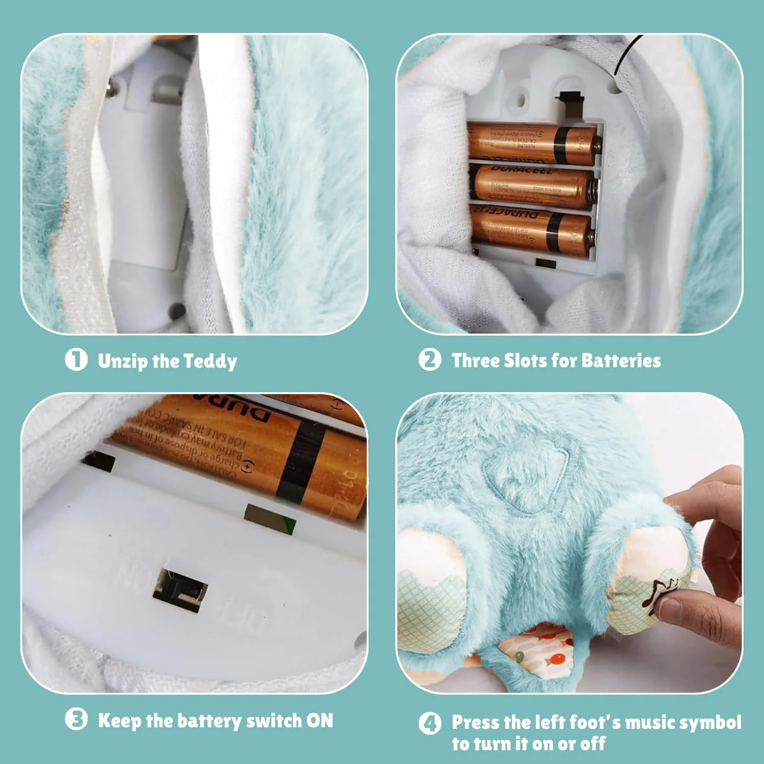 Design: Teddy bear with light-up belly and music playback