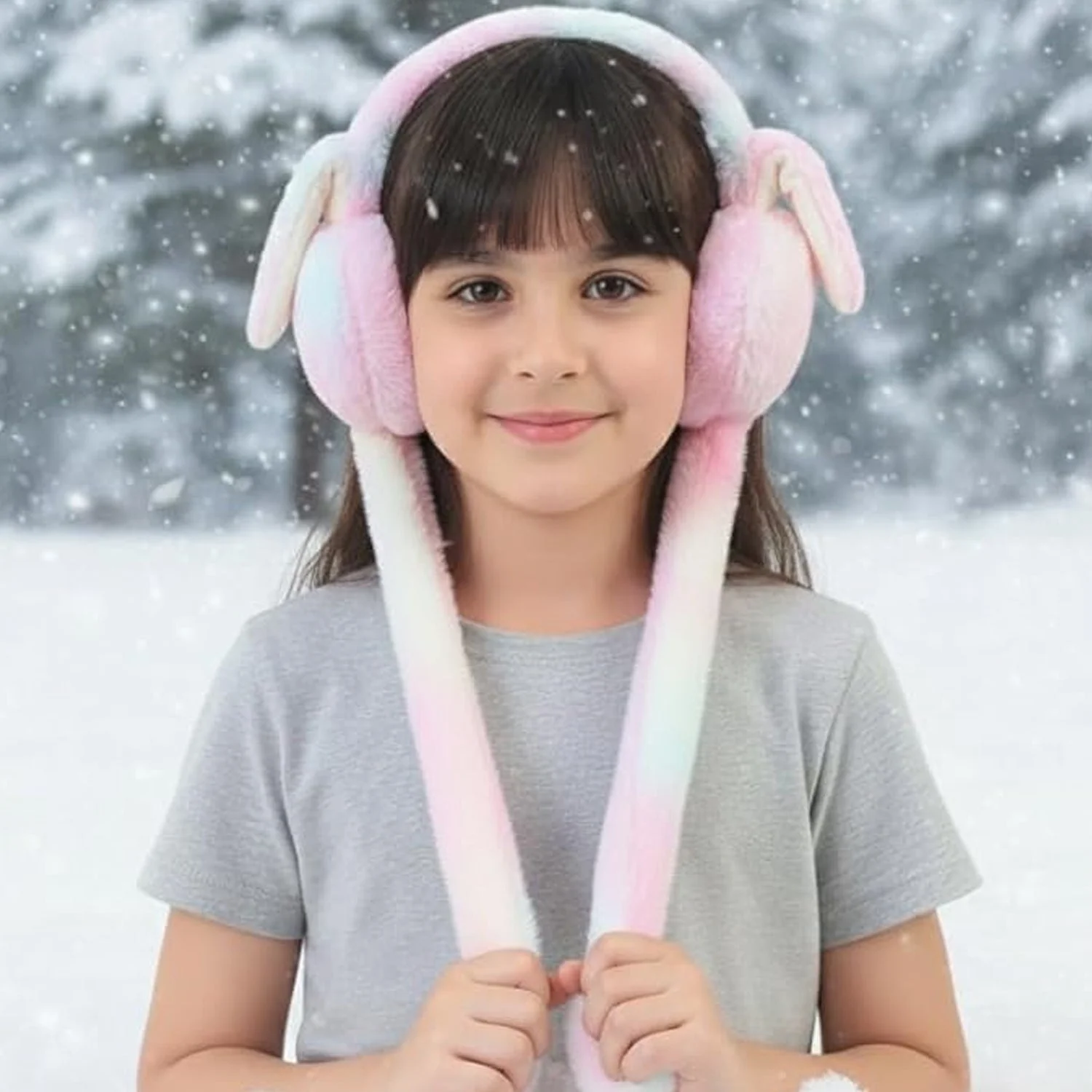 These soft plush winter earmuffs are designed to provide gentle warmth and comfort for children during colder days. The cushioned ear covers help protect ears from chilly air while offering a snug and soothing feel suitable for extended wear. Featuring long hanging straps, the design adds a playful touch while making the earmuffs easy to hold or adjust. Lightweight and comfortable, they are suitable for everyday outdoor use without causing pressure or irritation. A practical and child-friendly accessory that combines warmth, comfort, and a fun appearance.