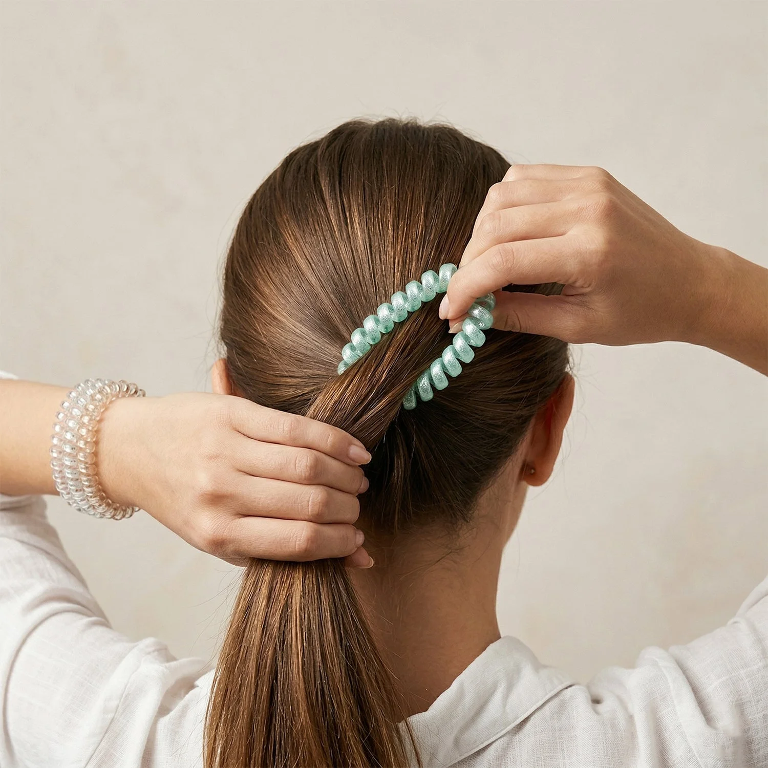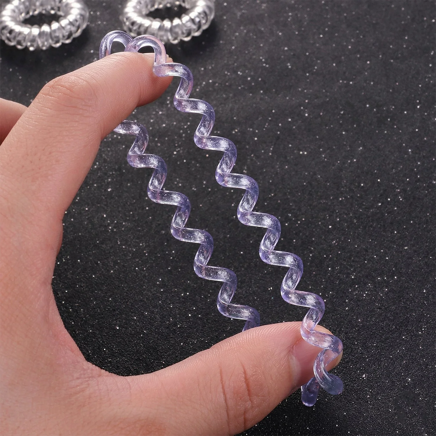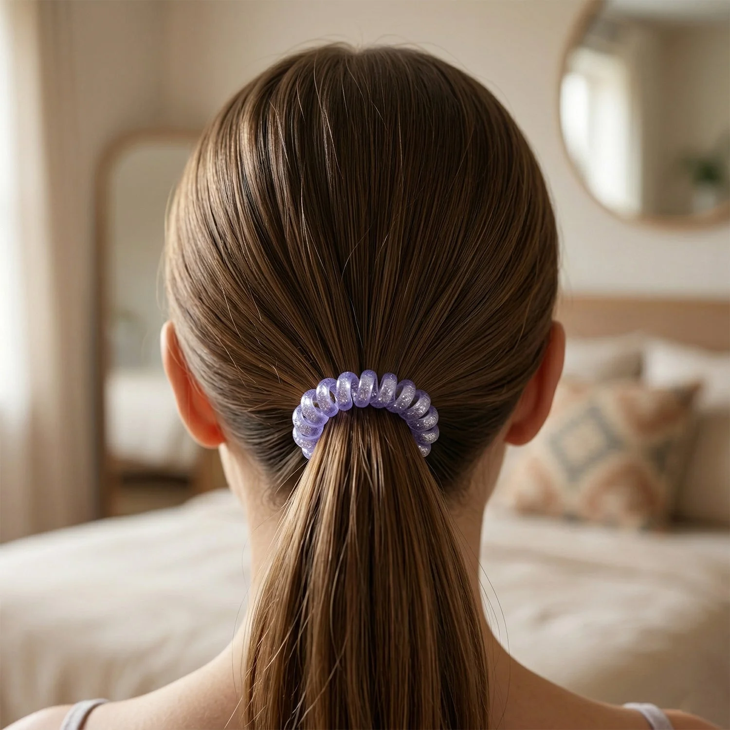 Plain hair ties can feel boring and fail to complement your style. The Soft Stretchable Glitter Spiral Coil Hair Ties Set adds sparkle while maintaining strong hold. These glitter hair ties double as spiral coil hair bands, offering flexibility and style. Designed as stretchable hair ties, they provide a comfortable fit for all-day wear.