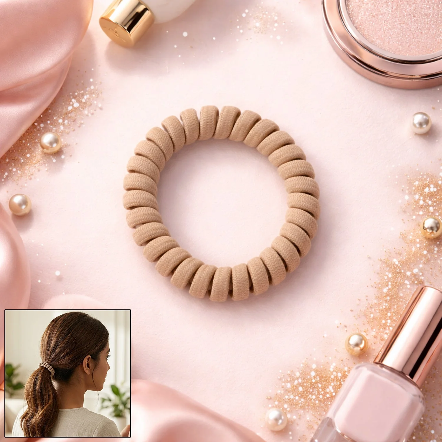 spiral hair ties, coil hair bands, telephone wire hair ties, no crease hair ties, soft stretchable hair bands, waterproof hair ties, ponytail holders women, girls hair accessories, plastic coil hair ties, elastic spiral hair bands, hair ties set 1 Pc, colorful hair bands, damage free hair ties, tangle free hair ties, strong hold ponytail bands, everyday hair accessories, cute hair ties for girls, trendy hair bands, flexible spiral hair ties, lightweight hair ties, durable coil hair bands, casual hair accessories women