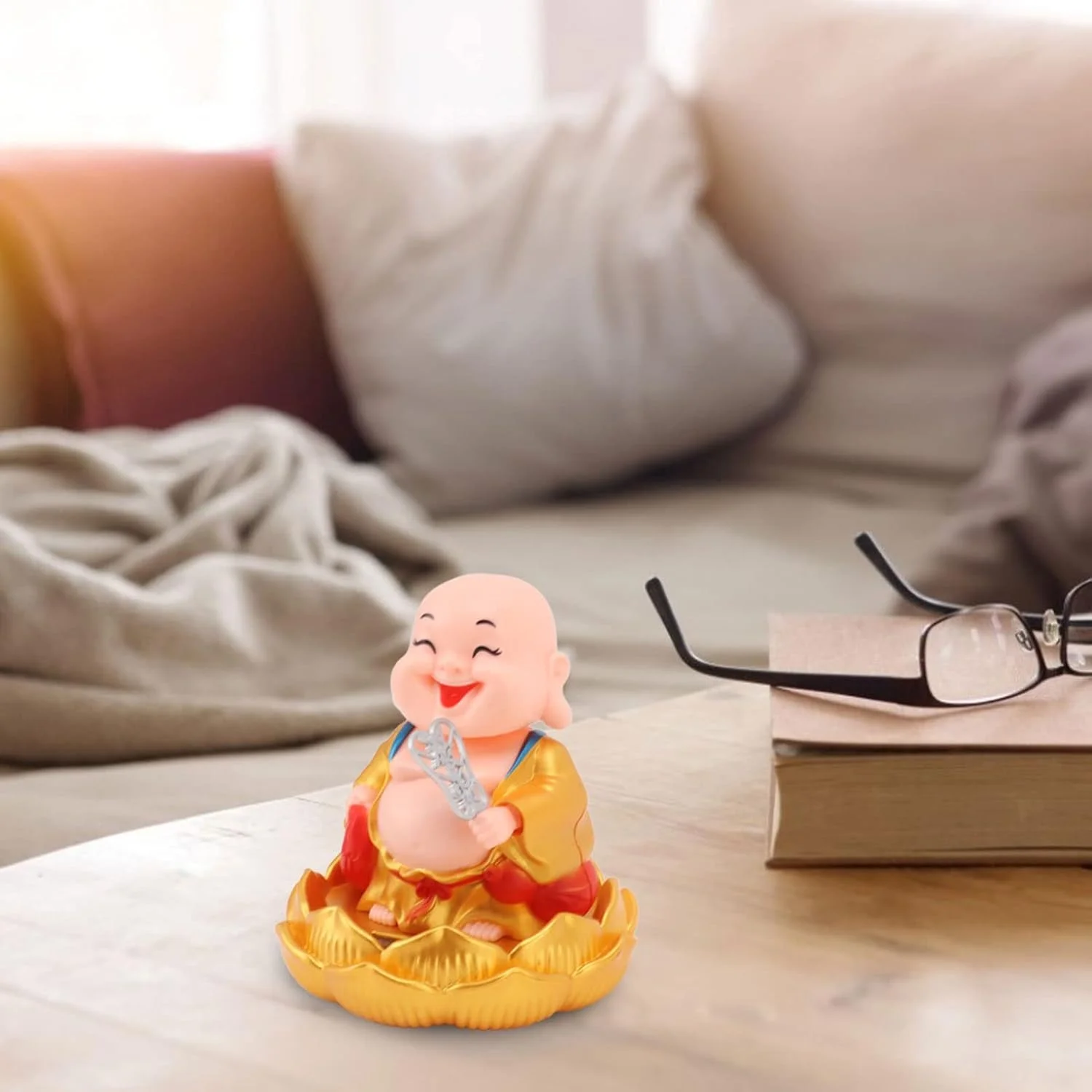 Solar Power Moving Head & Hand Buddha Car Ornament, Automatic Drive, Wobble Light, Energy Induction, Solar Buddha Statue, Decorative, Vivid, Unique Shape for Car (1 Pc)
