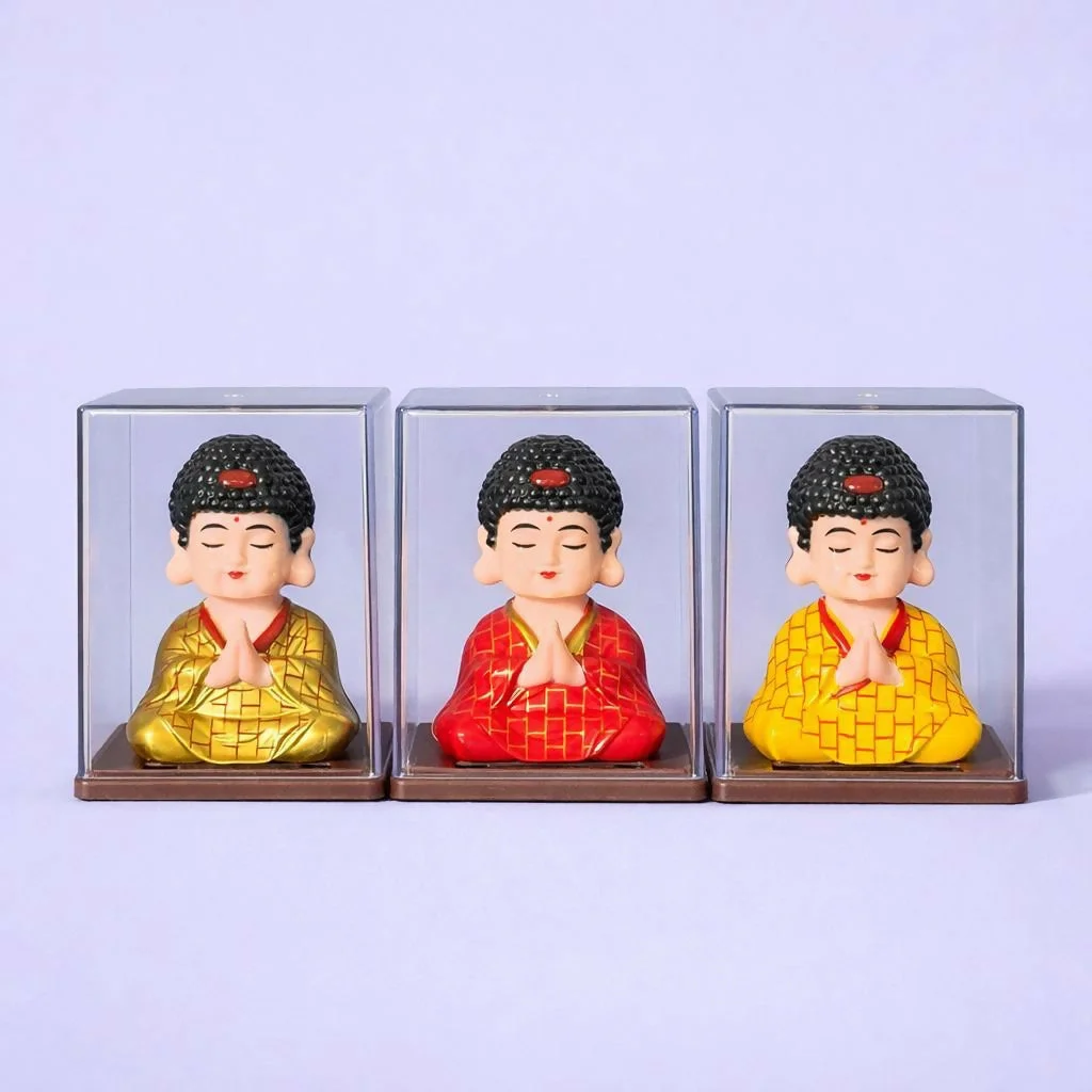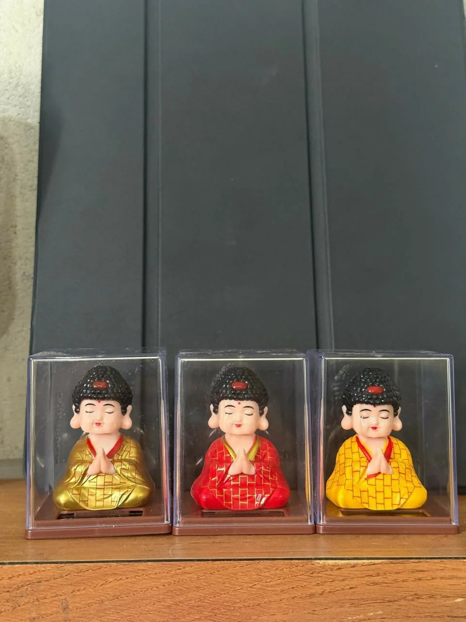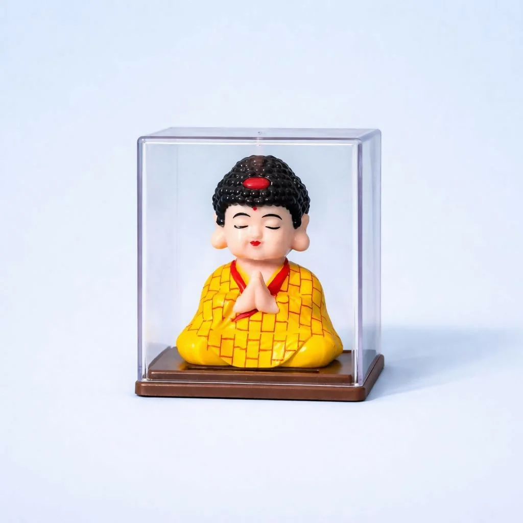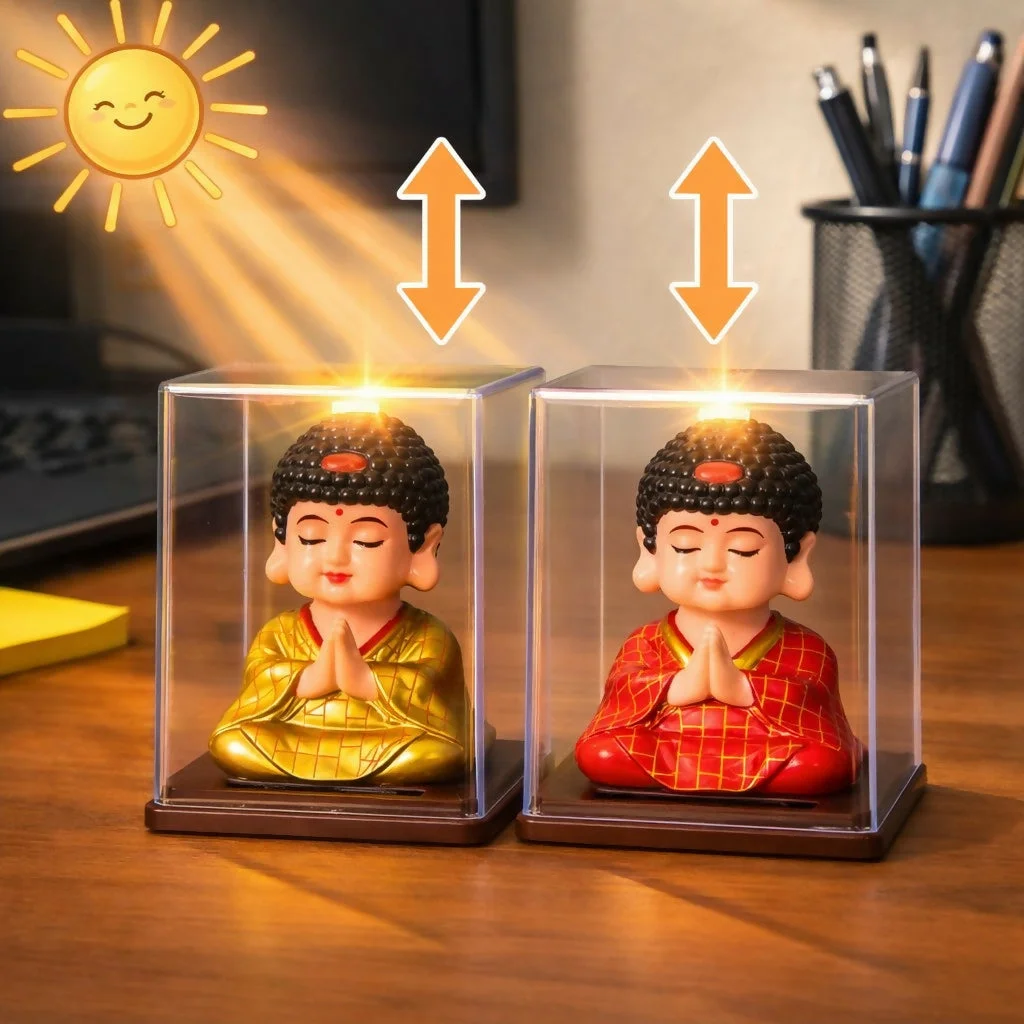 solar bobble head, Buddha bobble head, solar figurine, moving head idol, desk decor item, car dashboard decoration, spiritual decor, gift item, decorative statue, solar powered toy