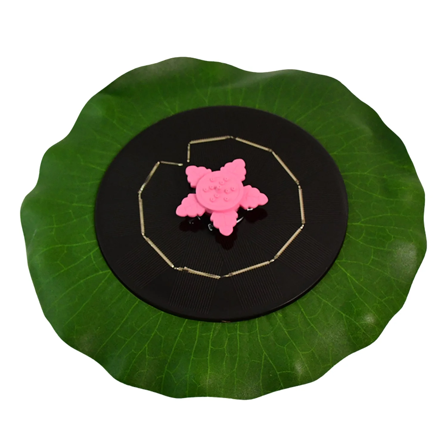 Unique design: Features a green leaf-like base with a black solar panel and a pink star-shaped nozzle.
