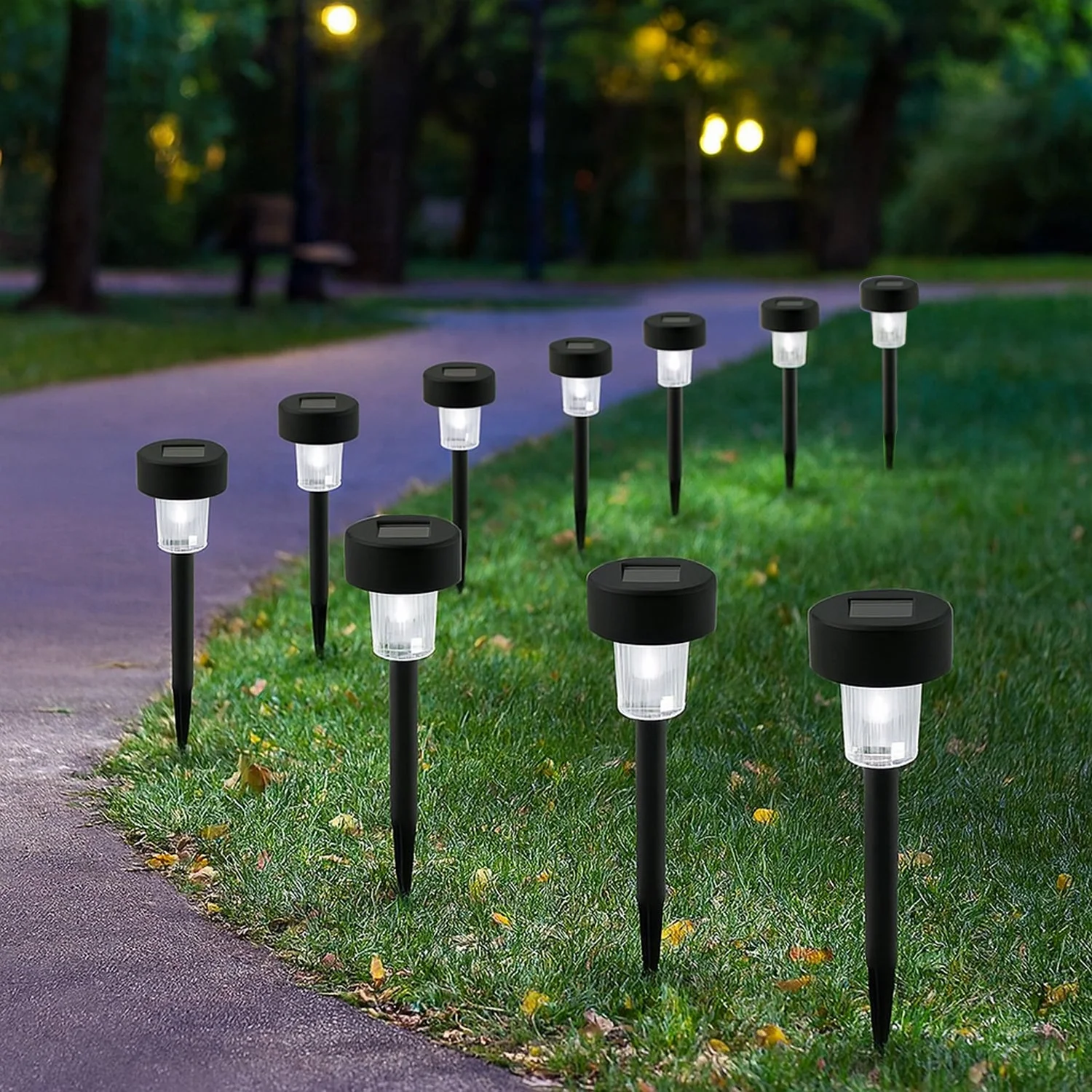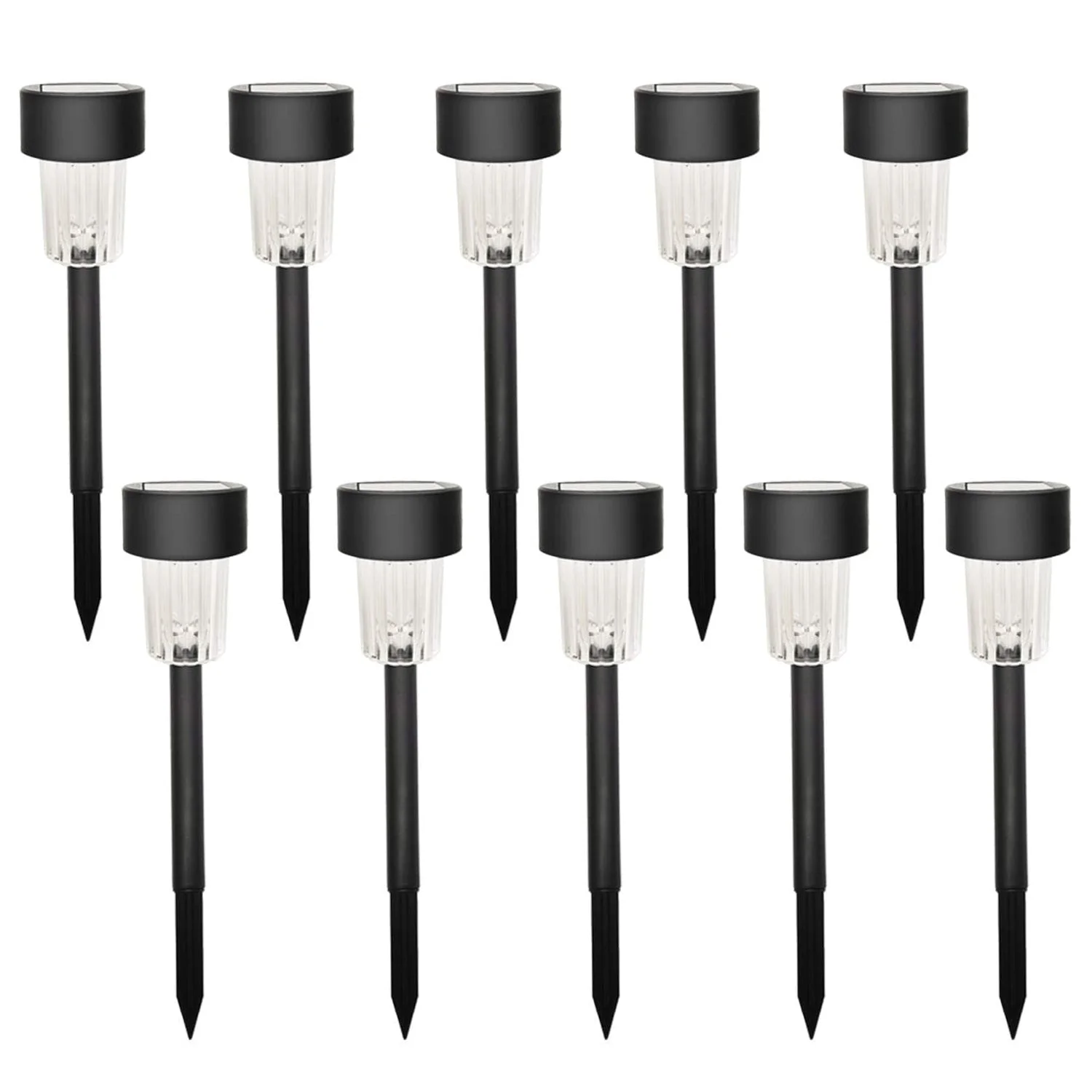 Set of 10 solar-powered pathway lights for wide coverage.