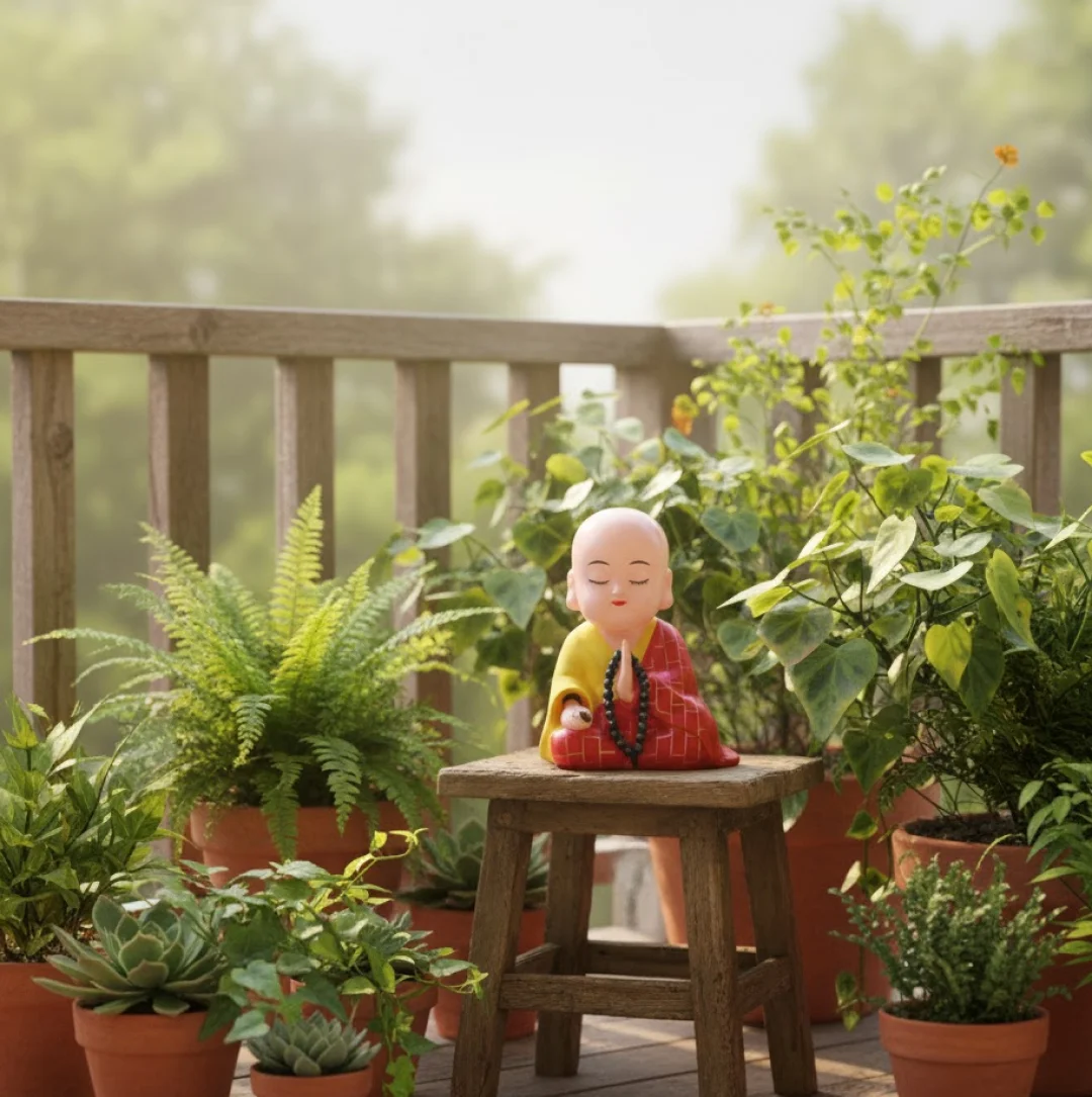 Solar Powered Sitting Buddha Statue for Gifting | Home Decor and Car Dashboard, Moving Head and Hand | Decor for Living Room Car Office (1 Pc / Medium)