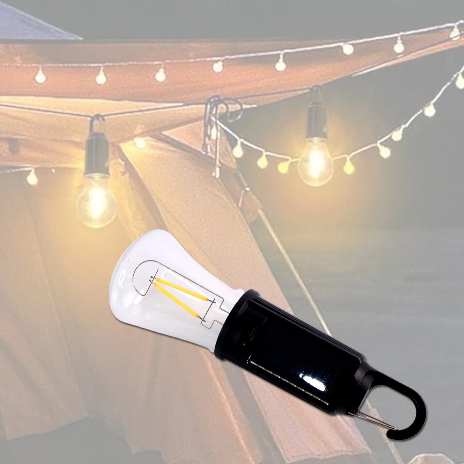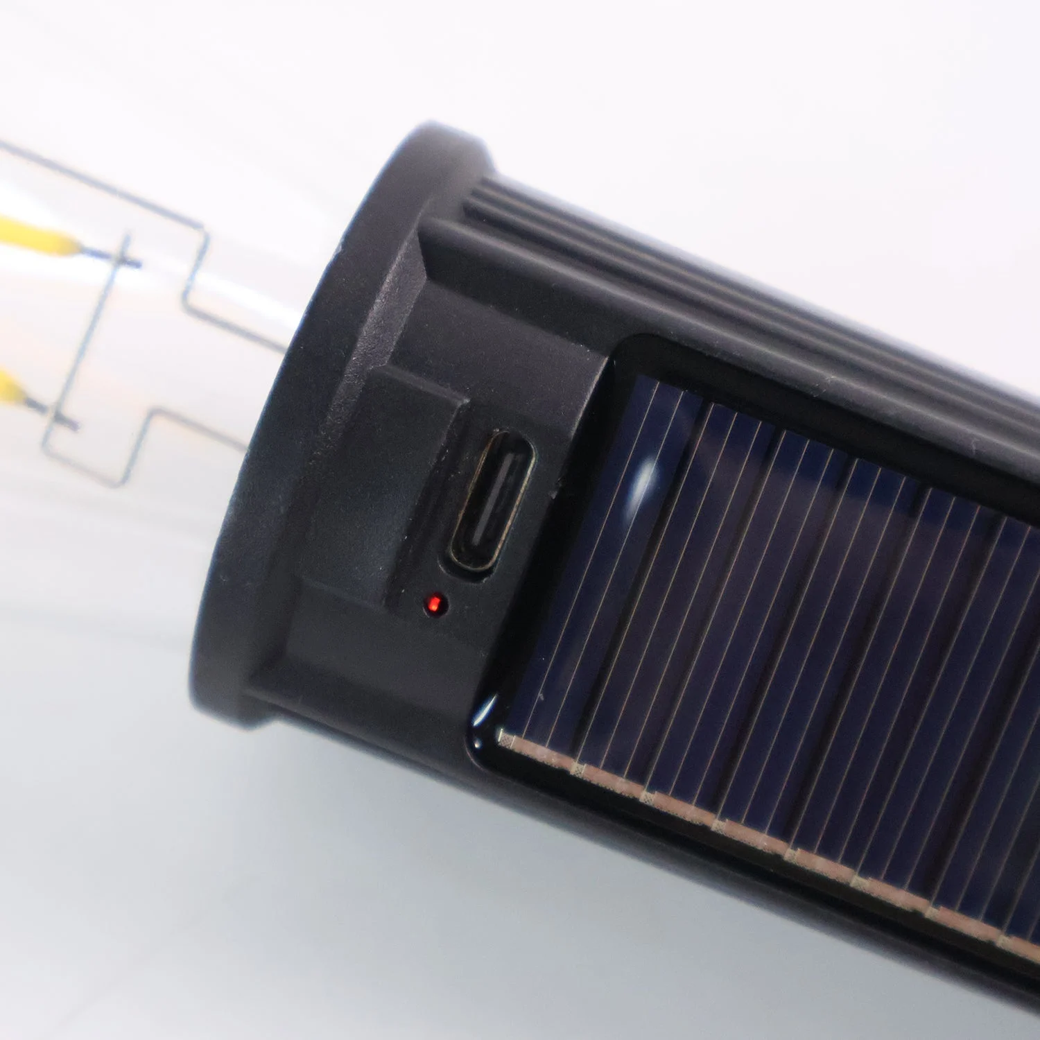 This dual-charging LED camping bulb combines classic design with modern functionality. Equipped with both USB and solar charging capabilities, this energy-efficient lantern ensures you never run out of light during emergencies, travels, or camping. The bulb features a vintage-style filament LED encased in a clear dome, along with a sturdy hook for easy hanging in tents, patios, or balconies. Whether you're off-grid or simply looking for an eco-friendly lighting solution, this lamp is the perfect companion for your adventures.