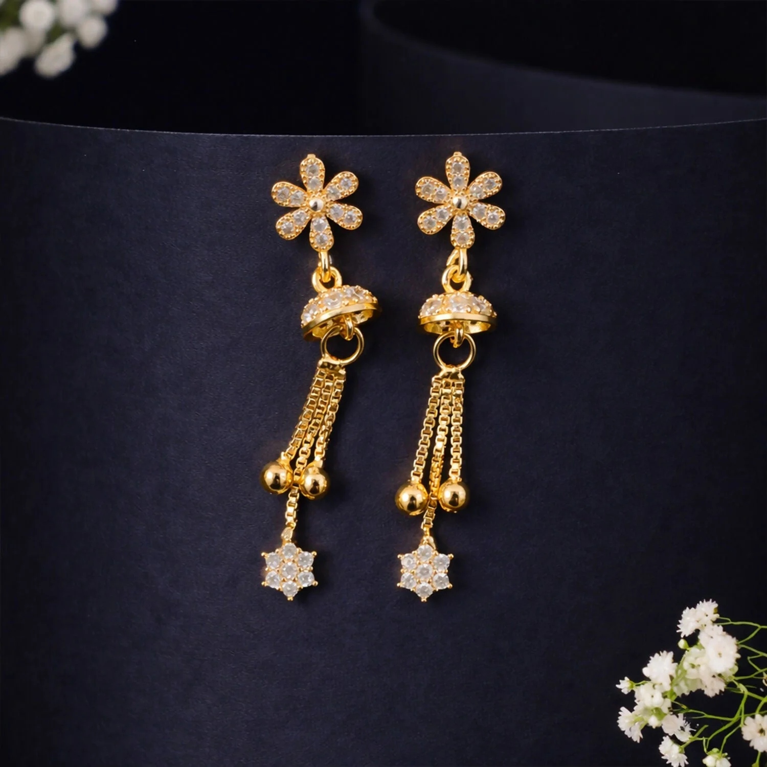 Be the first to review Sparkling Starburst Drop Earrings – Rose Gold Floral Dangles!