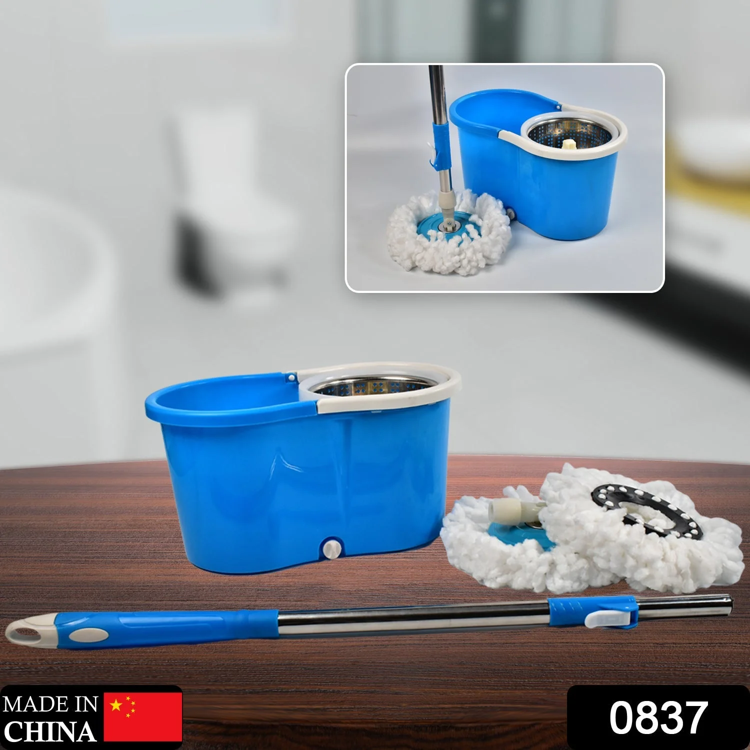 0837 Spin Floor Cleaning Easy Advance Tech Bucket Mop and Rotating Steel Pole Head with 2 Microfiber Refill Heads for Household Floor Cleaning (MOQ :- 25pc)Description:-
