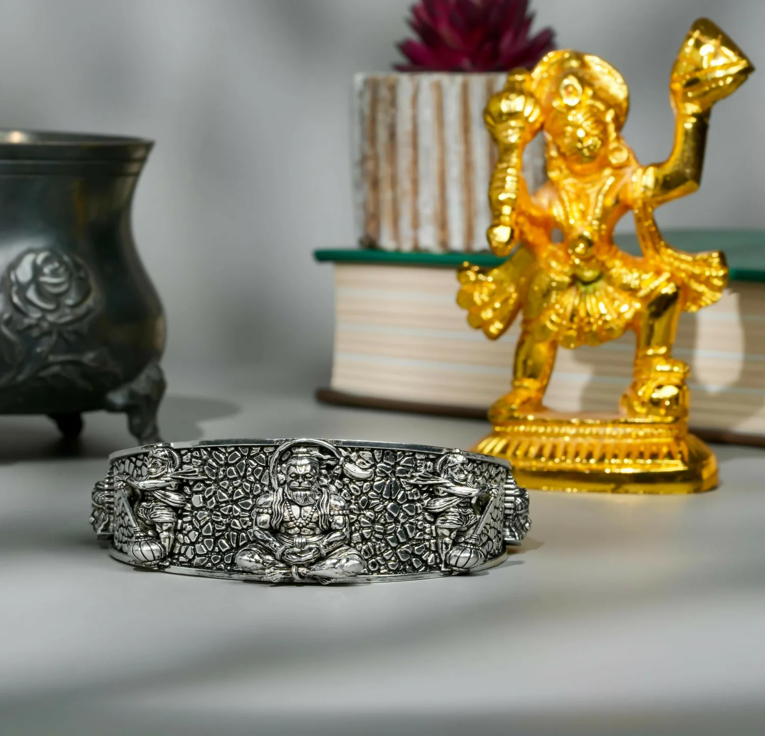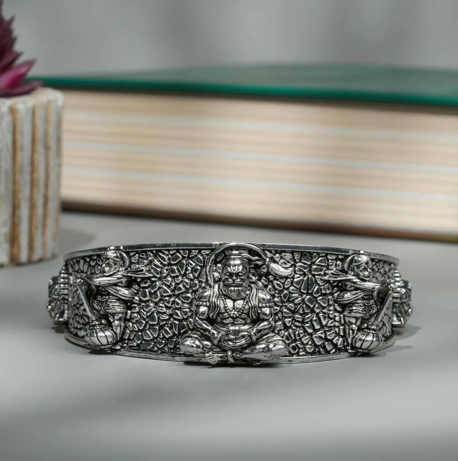 Hanumanji Kada – Antique Finish Spiritual Adjustable Metal Bracelet for Men & Women