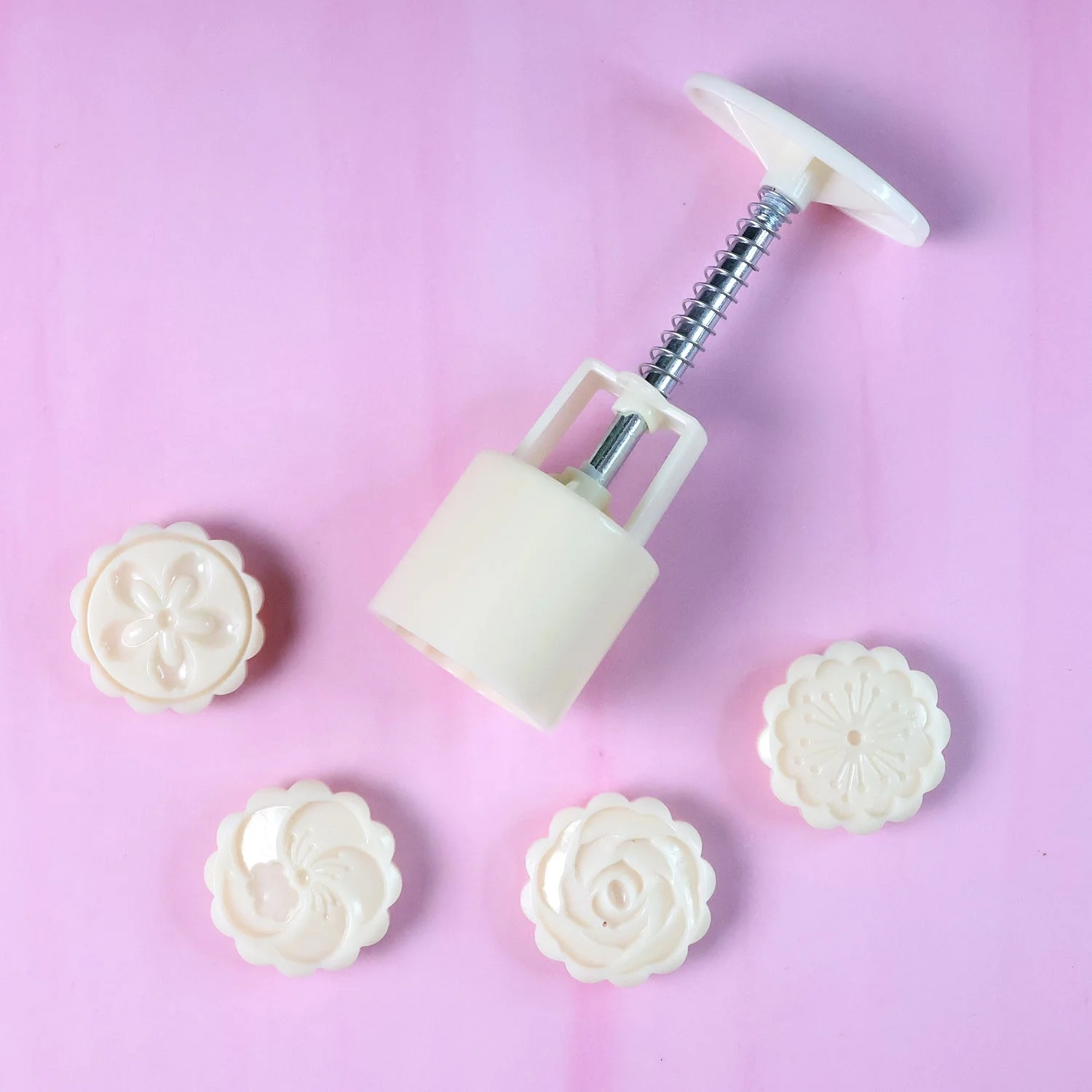 4-in-1 Spring Press Cookie & Pastry Mold Set – Interchangeable Floral Stamps for Biscuits, Chakri/Snack Shaping, Fondant & DIY Crafts