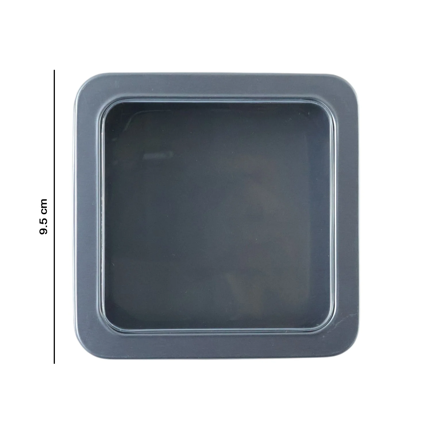 Keep your small essentials neatly organized with this 9.5 x 9.5 cm square metal storage tin box designed for convenience and durability. Featuring a transparent window lid, this compact container allows you to easily view the contents without opening it. The sturdy metal construction ensures long-lasting use while protecting stored items from dust and damage. Its sleek and minimal design makes it suitable for home, office or gifting purposes. Ideal for storing jewelry, craft supplies, coins or small accessories, this multipurpose tin box combines practicality with a clean, modern look.