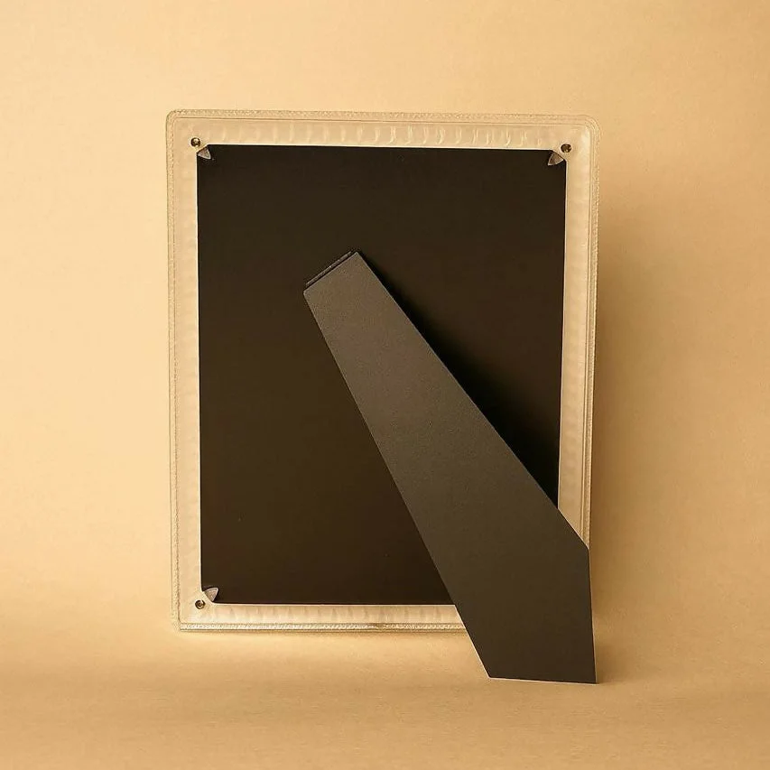 Square LED Frame – Elegant white LED illumination highlights your photos.