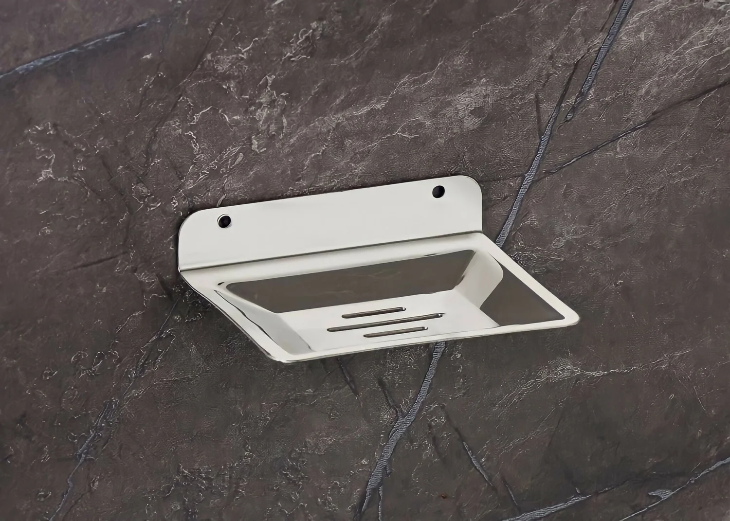 Stainless Steel Soap Dish Whether it’s sandalwood, lavender, or rosemary mint, keep your favorite bar of soap close at hand with the QTM+ Stainless Steel Soap Dish. A convenient and stylish addition to any bathroom vanity countertop, the soap dish keeps that slippery bar of soap securely in place and easy to access. The soap dish includes effective perforations, which prevent water from pooling, sending it down and away from soap so that the bar can dry out a bit between uses. The soap dish measures 5-1/2 inches long by 3-1/2 inches wide by 1 inch tall. Contemporary Style Made of brushed stainless steel, the soap dish provides sleek, simple style and durable strength. The dish integrates easily with existing accessories and decor, and it coordinates seamlessly with other pieces in the QTM+ modern bathroom accessory collection, which includes a matching tumbler, toothbrush holder, soap pump, and waste can.