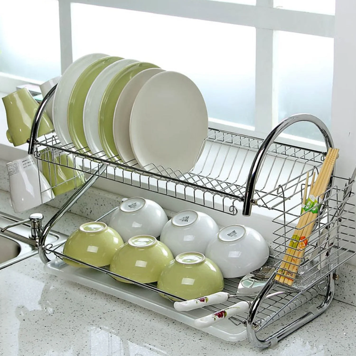 Stainless Steel 2 Layer Kitchen Dish Rack/Plate Cutlery Stand