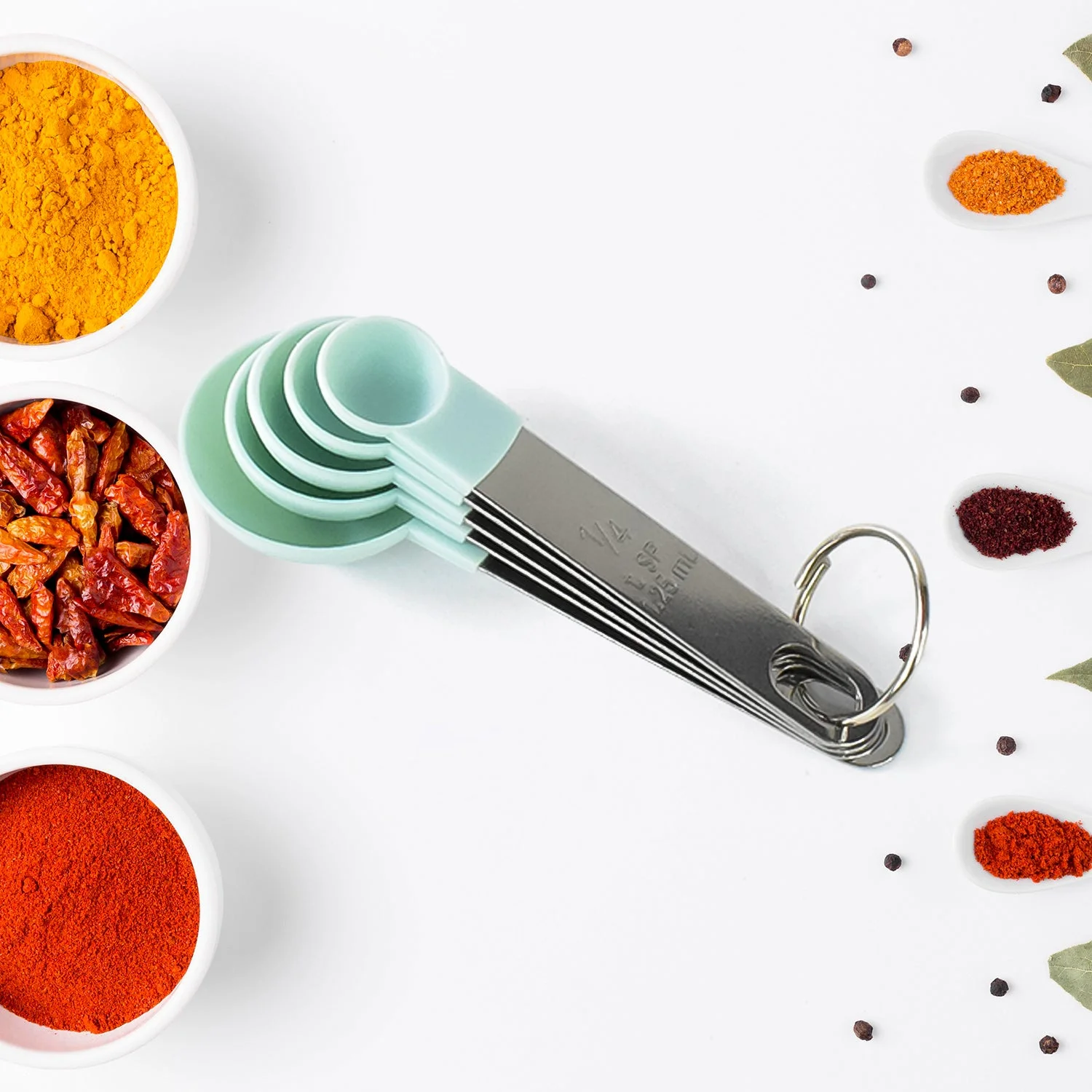 - To save room in your kitchen drawer, this classic styling set also features handles that can be hung for easy storage. It also comes with a ring lock to keep all cups & spoons tied so none gets lost.