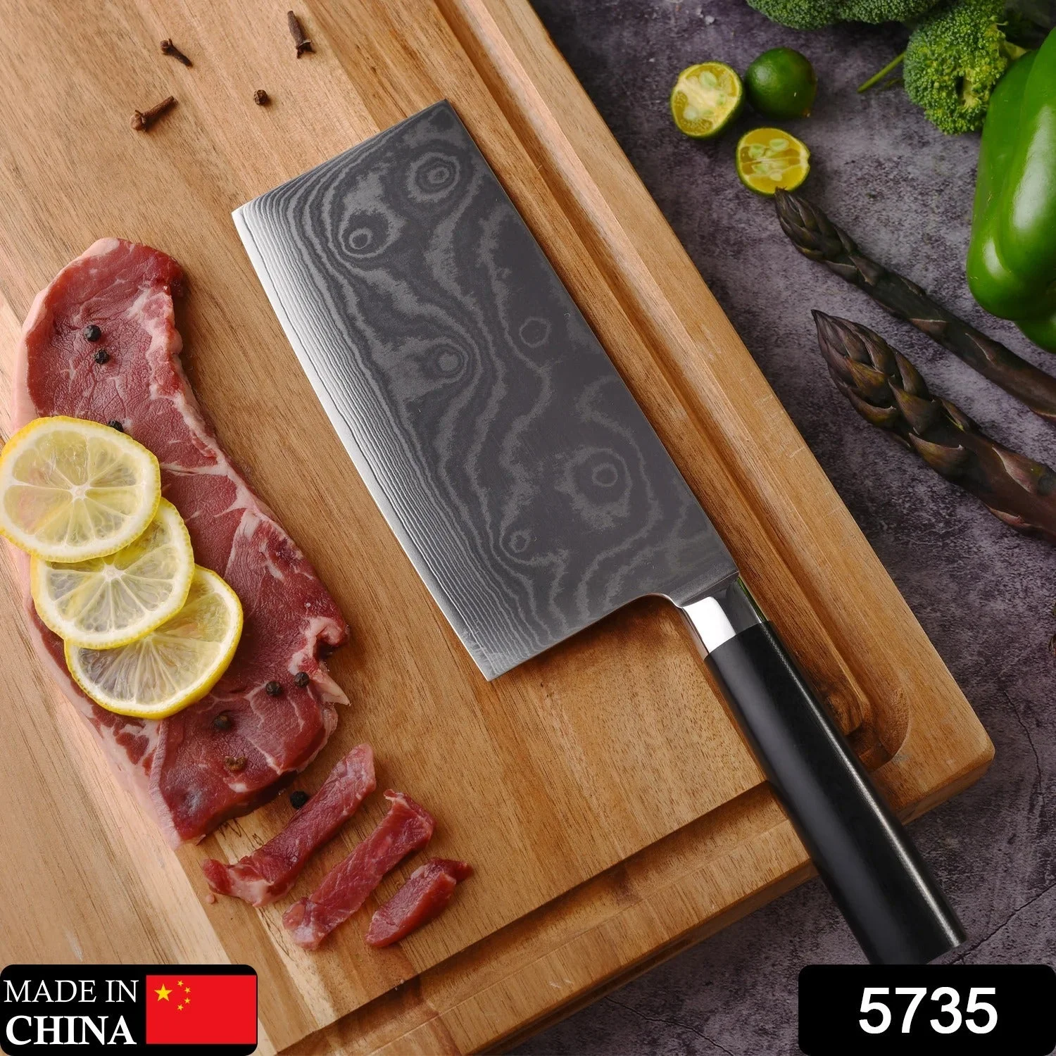 5735 Stainless Steel Chef Damascus Cleaver Vegetable Knife with Plastic Handle & Cover, Multipurpose Use for Kitchen or Restaurant (12 Inch)