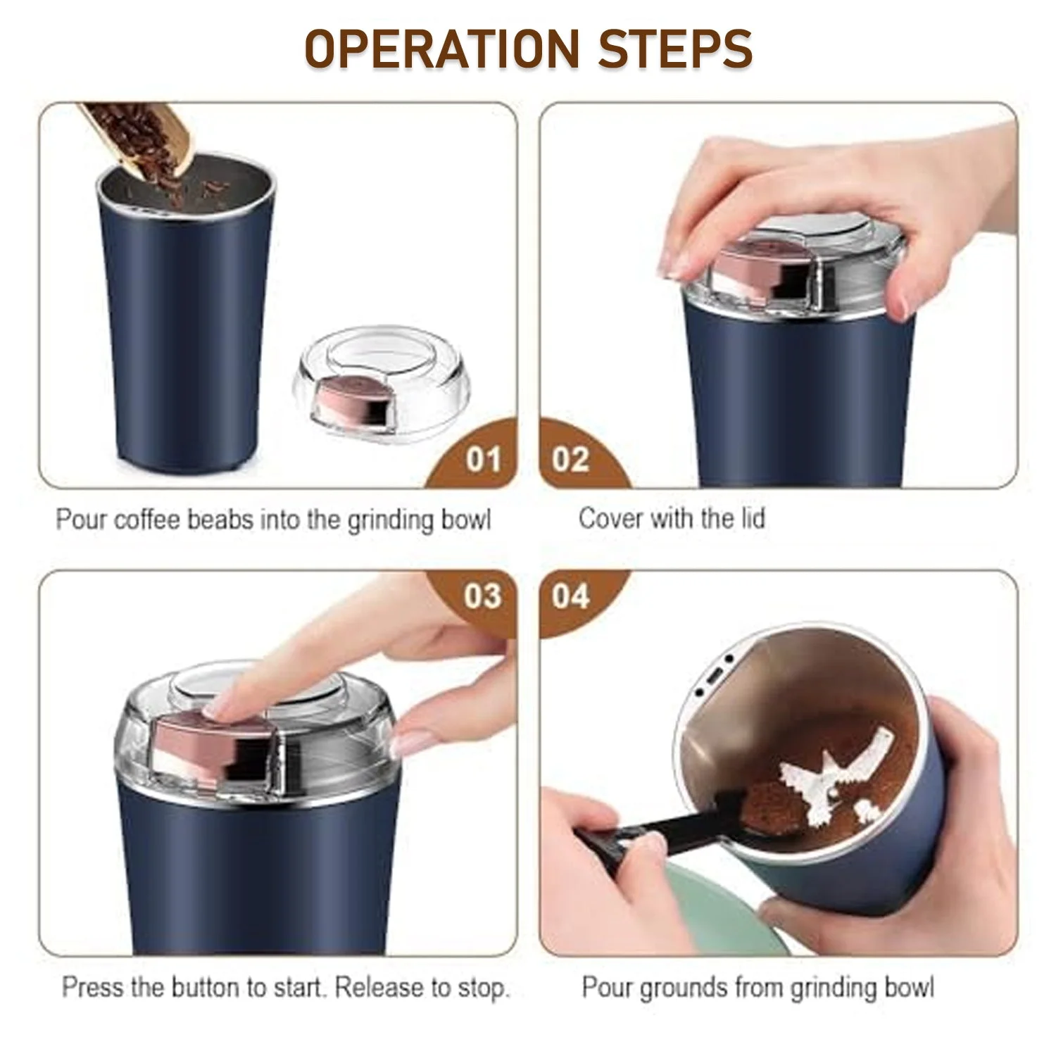 Stainless Steel Coffee Grinder Machine powerful Mini Grinder, Electric Coffee Bean Grinder Machine Portable Grinder for Home and Office for Espresso, Drip Coffee, and French Press - Durable, Quiet, and Portable for Home or Travel 300w (Multi Blades Grinder)