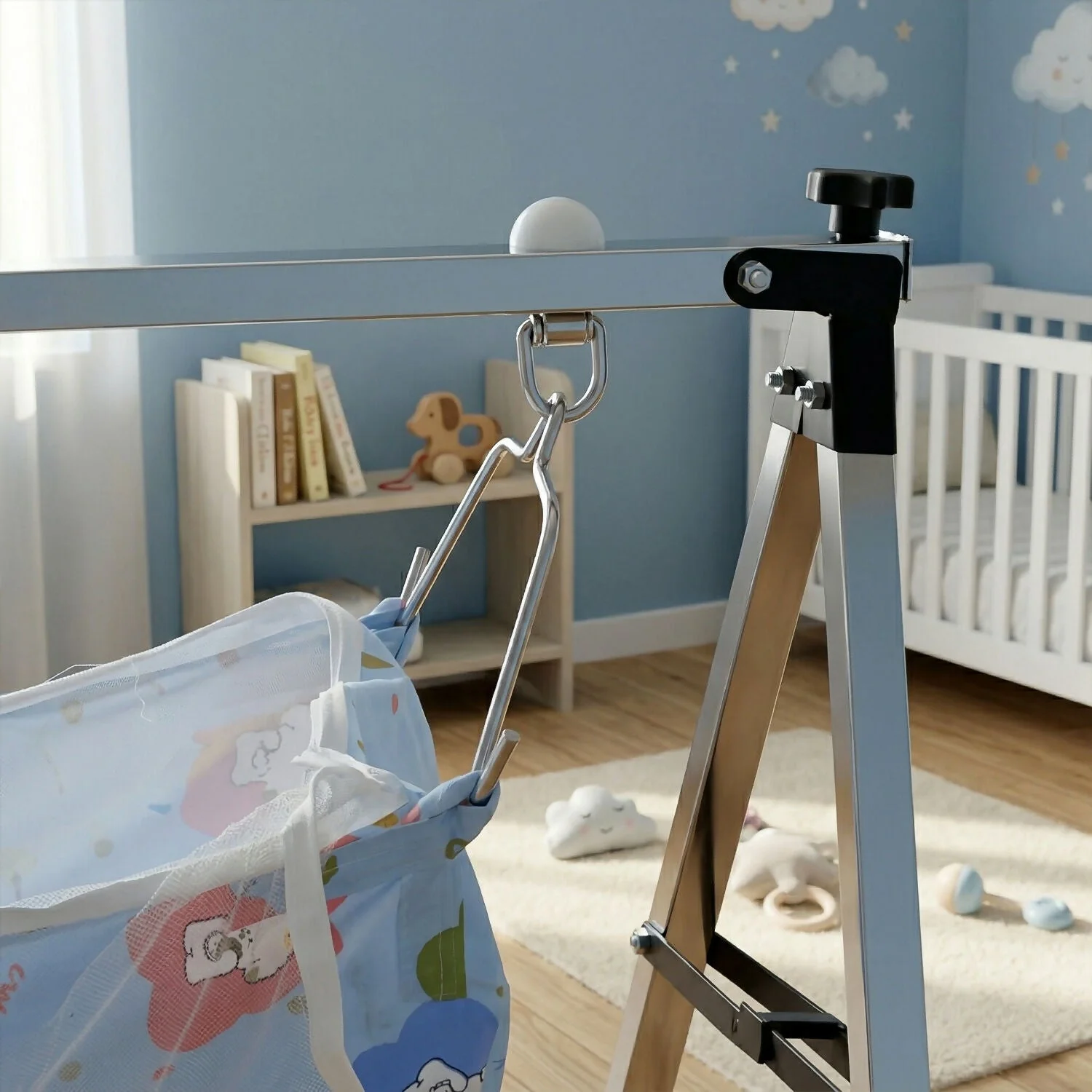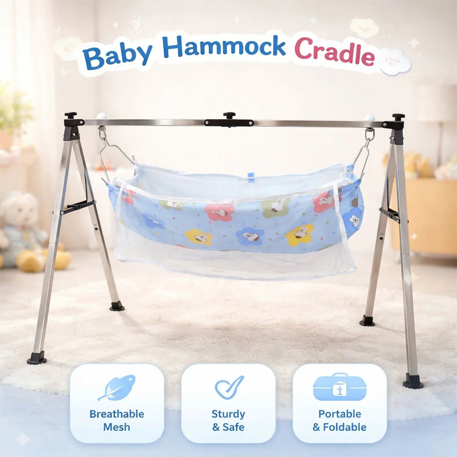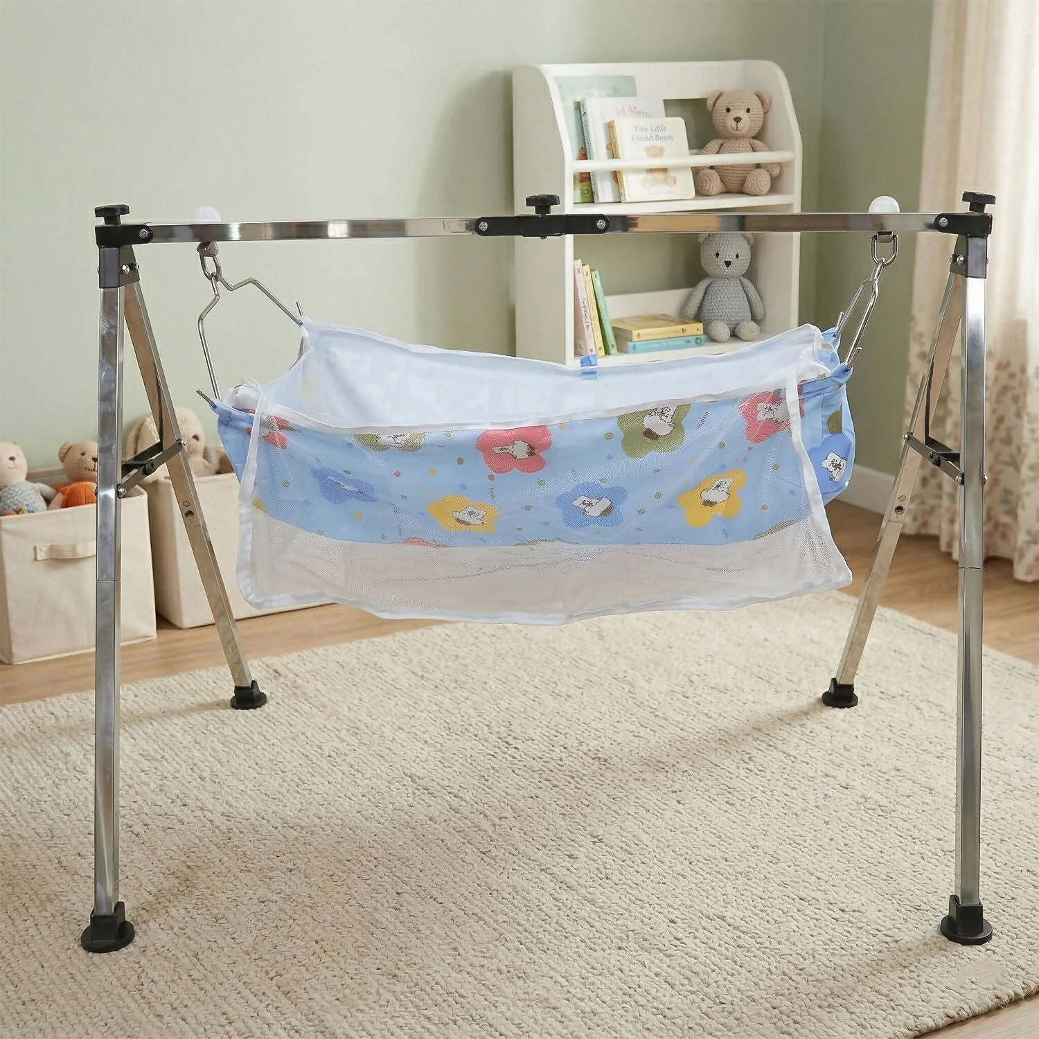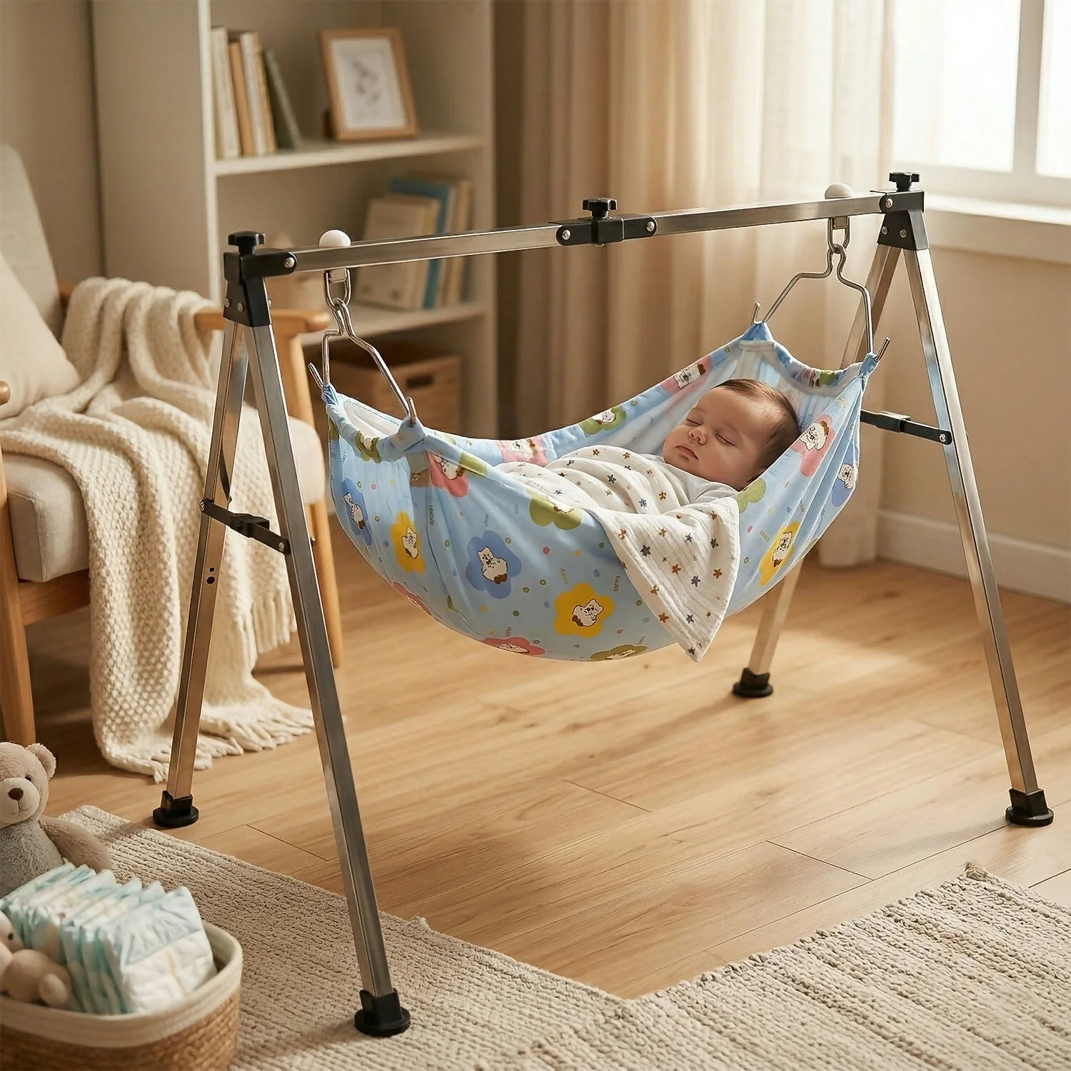The sturdy, foldable metal stand ensures safety and stability, while the breathable, colorful hammock provides maximum comfort. Perfect for indoor use, it blends beautifully into any nursery or bedroom setting.