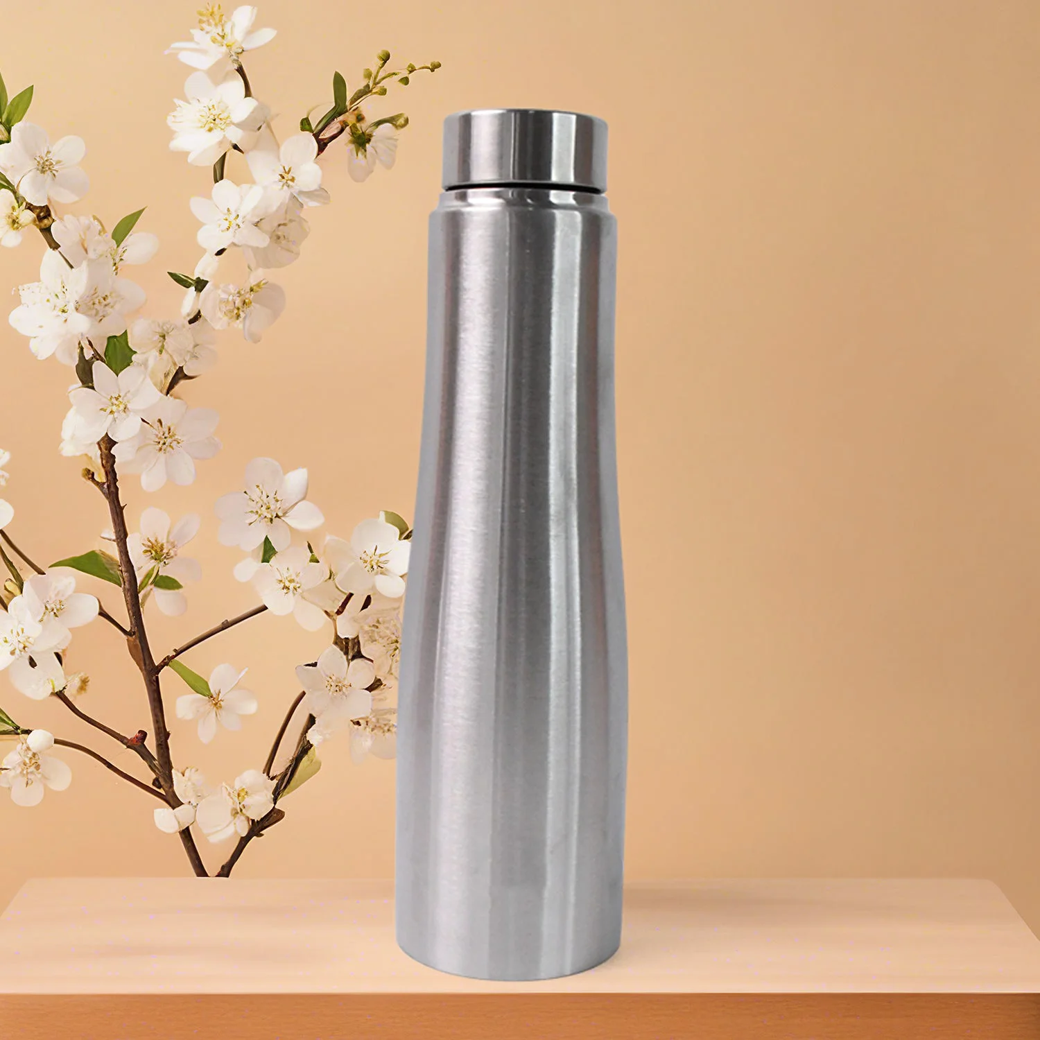 water bottle, stainless steel bottle, drinking flask,leakproof bottle, metallic water container,school bottle,fitness bottle, daily use bottle,slim steel bottle,sleek stainless steel flask, silver metallic bottle,elegant steel container