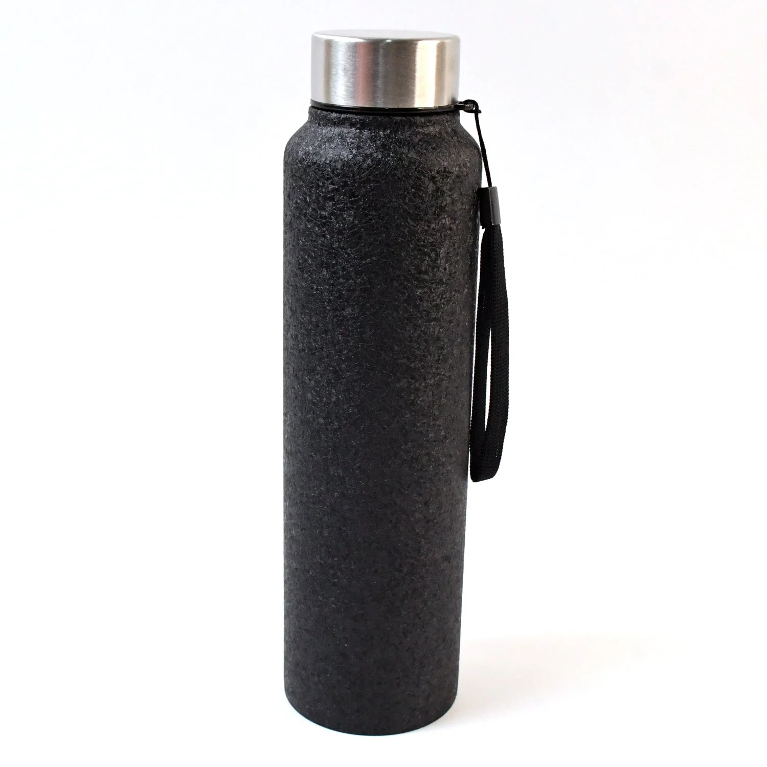 water bottle , drinking bottle , reusable hydration bottle , eco-friendly water bottle , office bottle , gym water bottle , school bottle , textured black bottle , stainless steel cap bottle