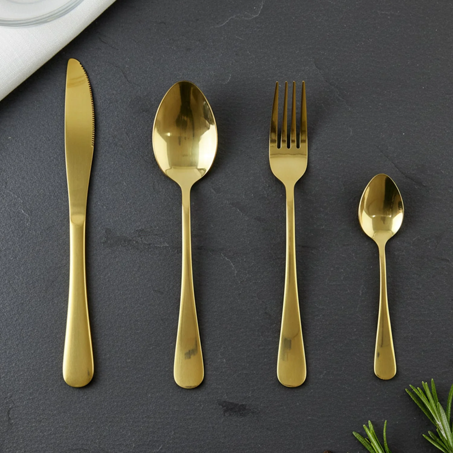 Includes 6 spoons, 6 forks, 6 knives and 6 tea spoons