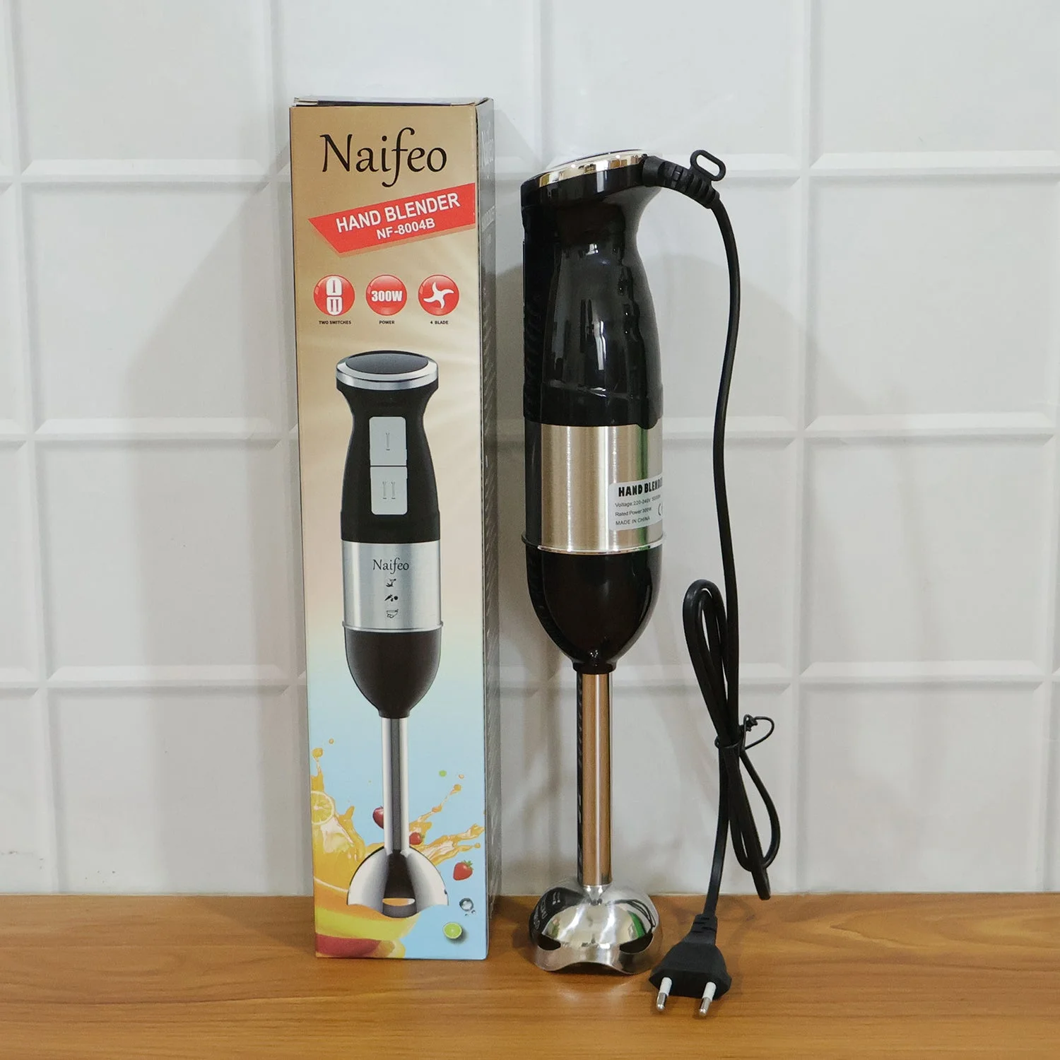 Electric Handheld Corded Immersion Blender for Kitchen, Stainless Steel Handheld Emulsion Blender with Four-blade Blade, Electric Hand Mixer for Smoothies, Soups (300W / 1 Pc)