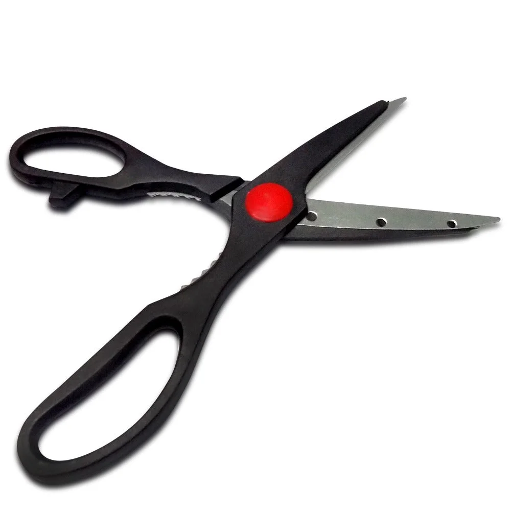 It features multi-purpose knives with peeler & Scissor