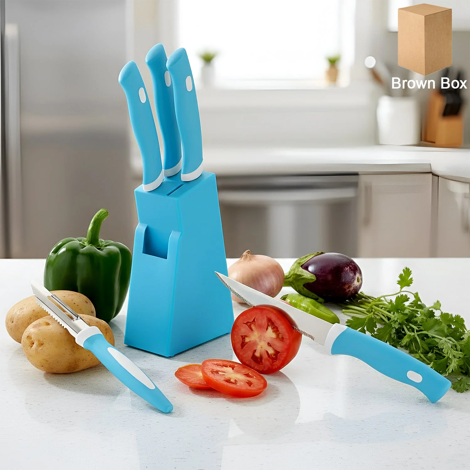 - Quick, Efficient Work The knives on the 6 piece Knife set have been given ergonomic plastic handles which help reduce the stress on your hand while you cut. Moreover, this set has been designed to optimize your potential in cooking, with its different components, Chaku Stand