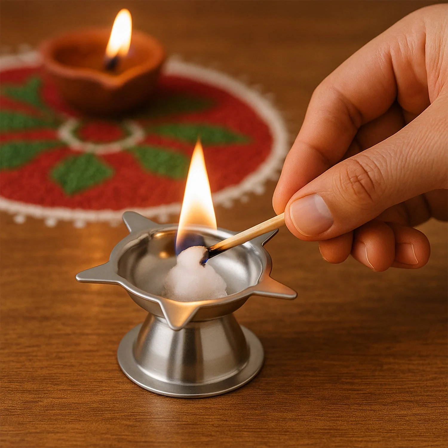 diya,puja lamp, lighting lamp, prayer lamp, aarti lamp, ghee lamp, traditional diya, festival diya, decorative diya,home temple, pooja room,Diwali lighting,metal diya, stainless steel diya