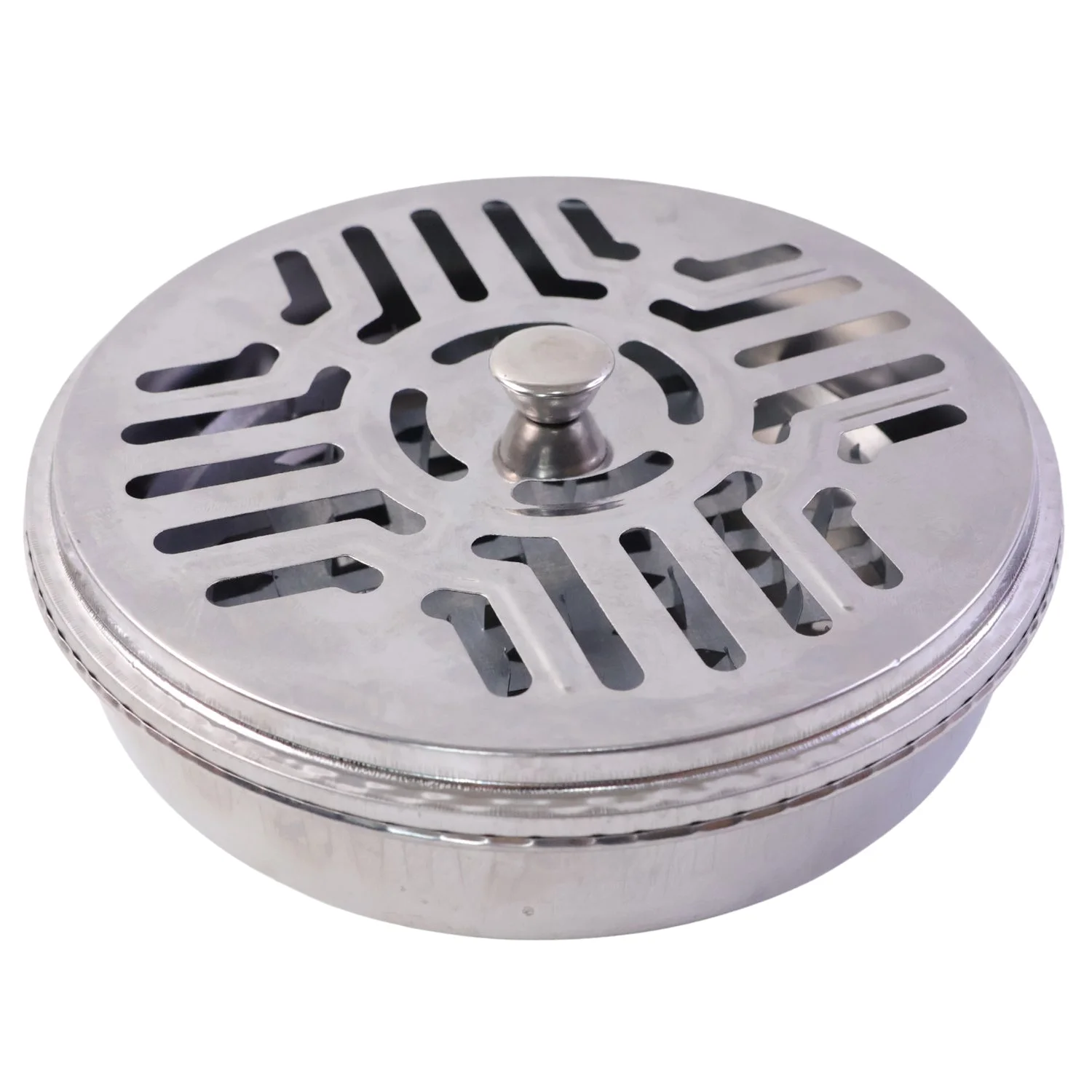 Protect your home from mosquitoes in a safer and cleaner way with this Stainless Steel Mosquito Coil Stand with Protective Lid. Designed with a sturdy metal body and a secure cover, this coil holder allows the mosquito coil to burn properly while keeping ash contained inside the tray. The vented lid ensures smooth airflow for continuous burning and helps reduce the risk of accidental fire caused by falling coil pieces.