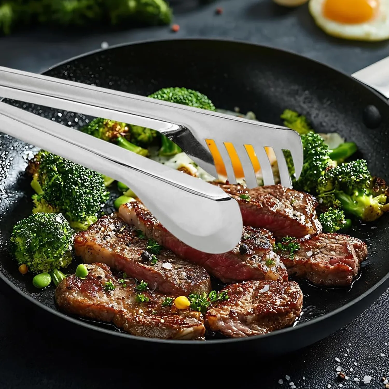 Upgrade your kitchen essentials with this 2-in-1 multipurpose stainless steel serving tong designed for maximum utility and convenience. Featuring a unique spoon-fork combination on each end, this tong is perfect for gripping, lifting, and serving pasta, salad, noodles, vegetables, or grilled food. Its sleek, rust-resistant stainless steel build ensures long-lasting durability and hygiene, while the ergonomic handle makes serving effortless. Whether you're cooking for the family or plating for guests, this versatile tong adds function and elegance to your kitchen toolkit.