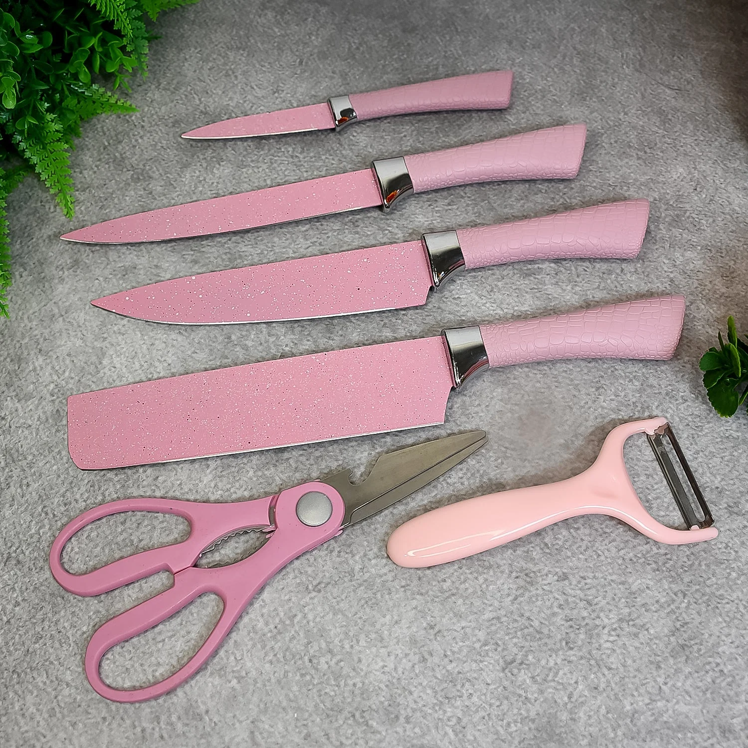 Corrugated stainless steel kitchen knife set Stainless Steel Non Stick Ceramic Coating 6 Pcs Chef Kitchen Knife Set with Scissor & Peeler (Mix Color)