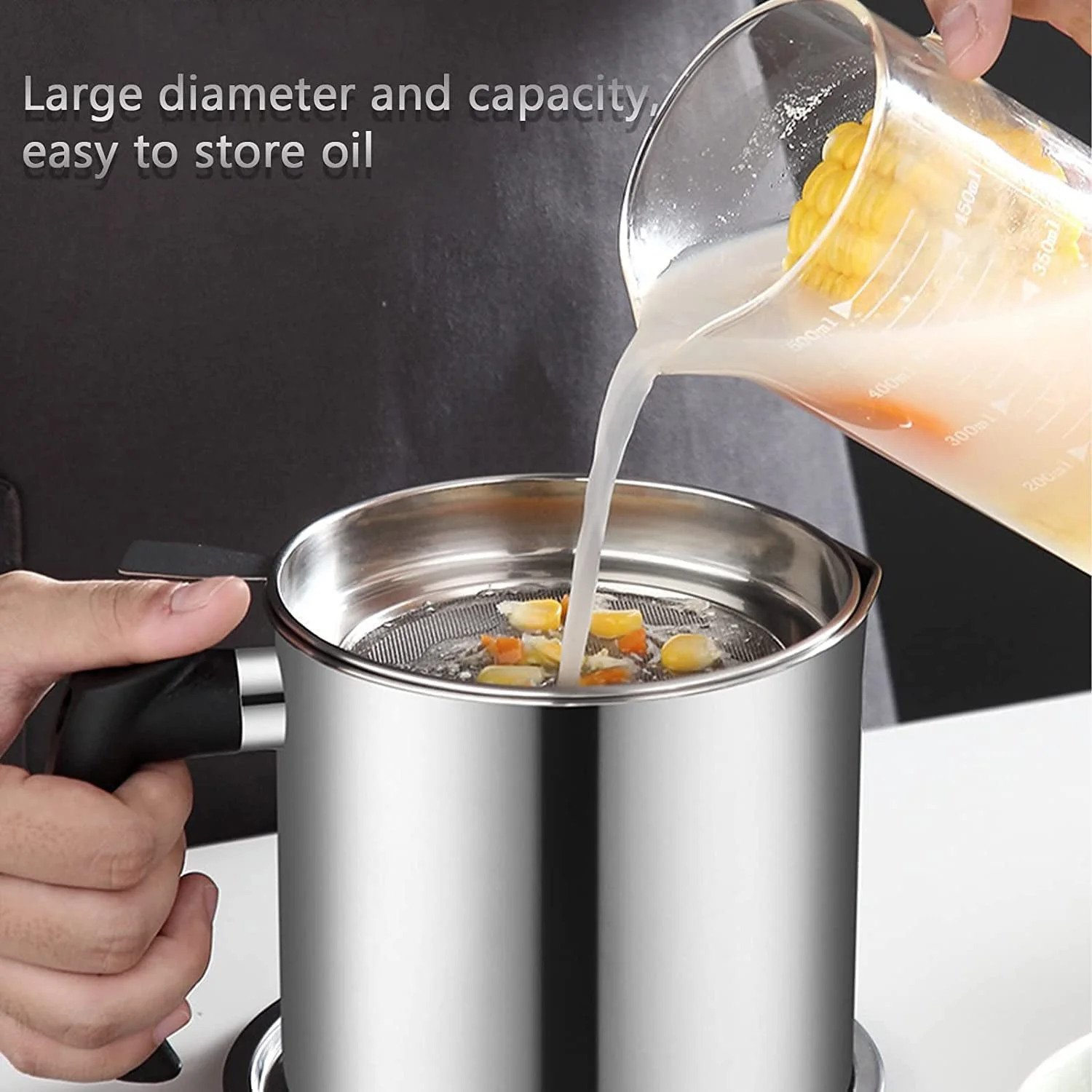 Product Name: Stainless Steel Oil Strainer Pot with Lid & Mesh Filter
