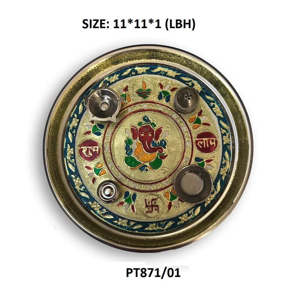 Steel Plated Pooja Thali Set. Occasional Gift, Pooja Thali Decorative,