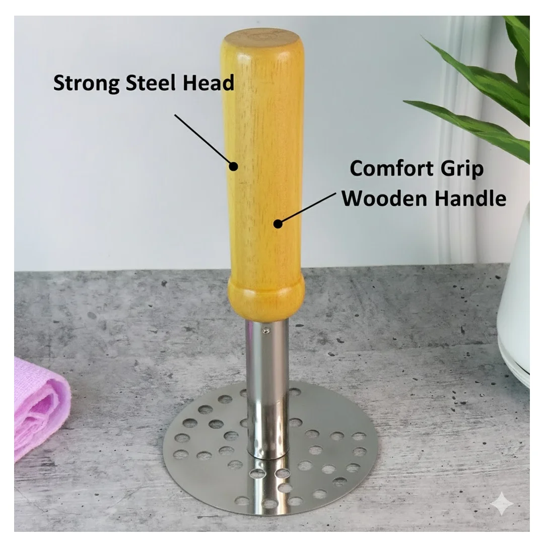 Kitchen Tools -Stainless Steel Potato Masher, Pav Bhaji Masher with wooden handle