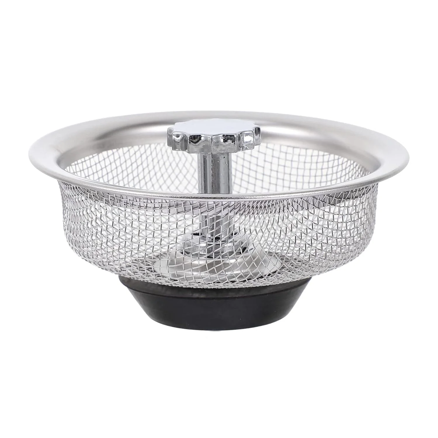 - Dual System of Filtration and Storage - Works as a strainer and a plug, depending on which way you want.The fine steel mesh on the mesh sink strainer catch can effectively capture the residue, thus ensuring the smooth flow of the sink system. When you rotate the handle and press it down, the rubber plug at the bottom of the sink drain strainer can block the sewer opening to store water.