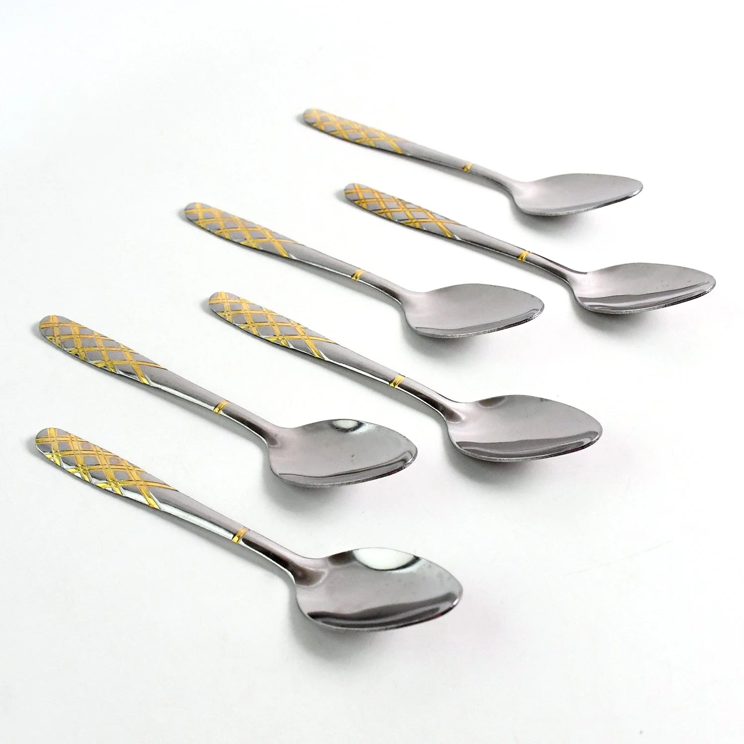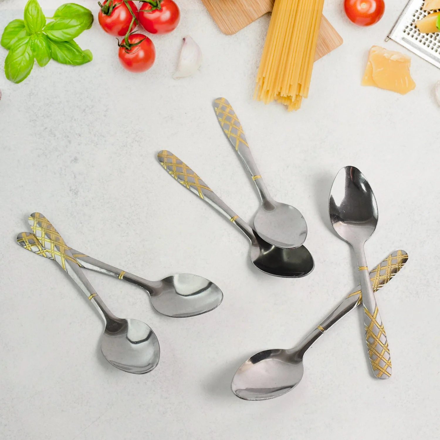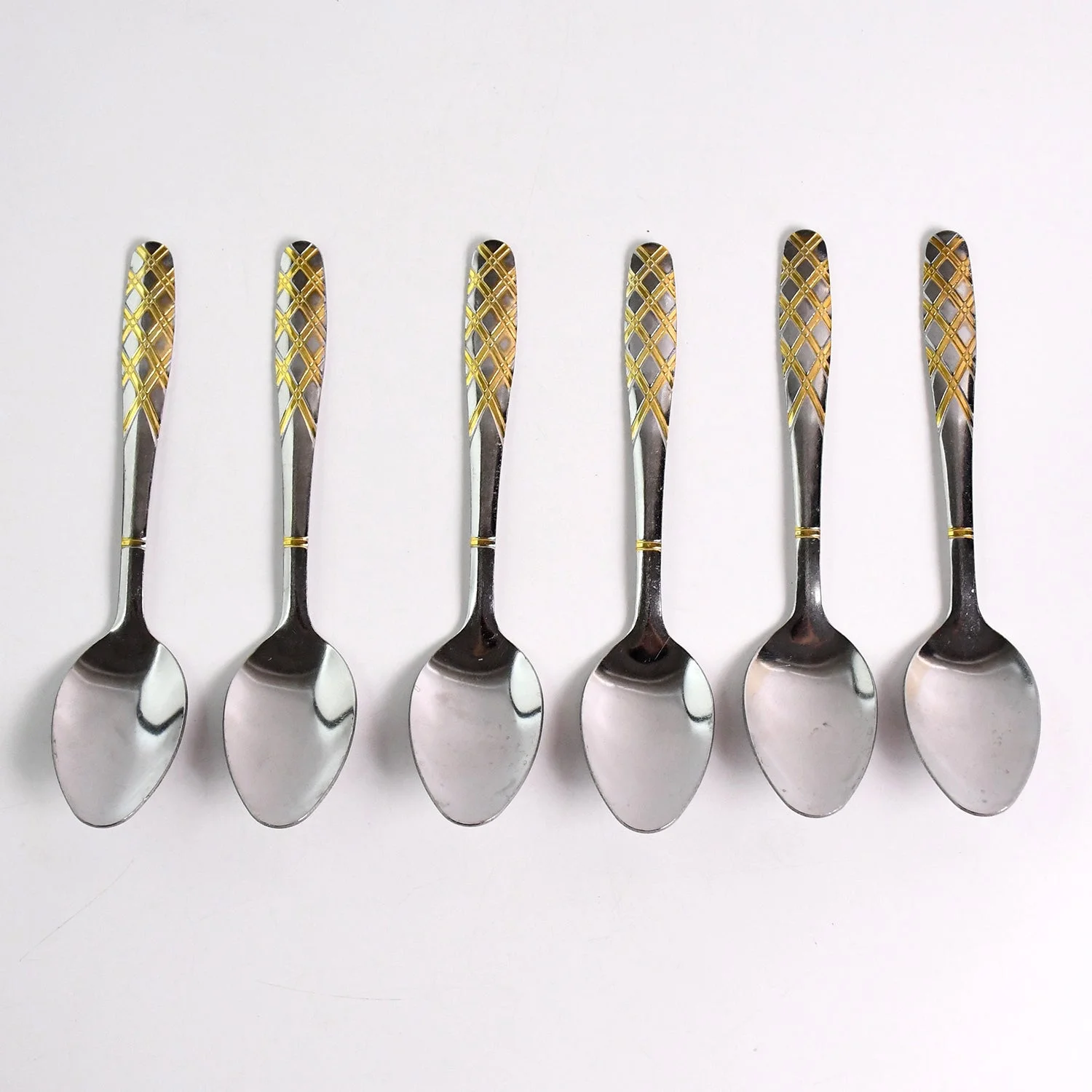 Stainless Steel Table Spoons / Baby Spoon Set Tableware Gold Plated, for Home, Dining and Kitchen Set of 6