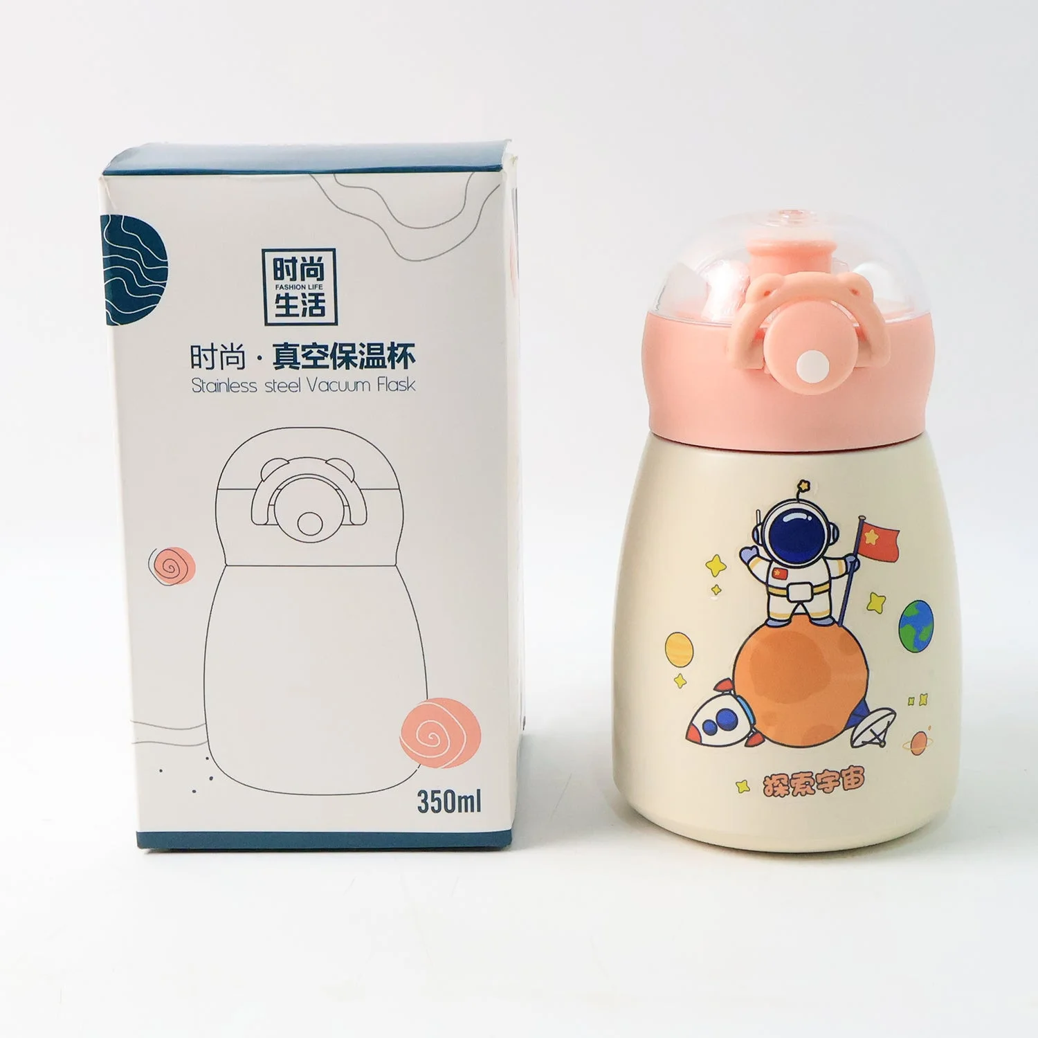 Make hydration fun and exciting for your little ones with this adorable 350ML vacuum insulated stainless steel flask. Designed specifically for kids, this bottle features a vibrant space explorer print and a user-friendly spill-proof lid with a flip-top for easy sipping. The double-wall vacuum insulation technology keeps drinks hot or cold for hours, making it ideal for school, travel, picnics, and more. The compact design fits perfectly in school bags and cup holders, while the child-safe materials ensure worry-free usage. A perfect blend of safety, style, and functionality!