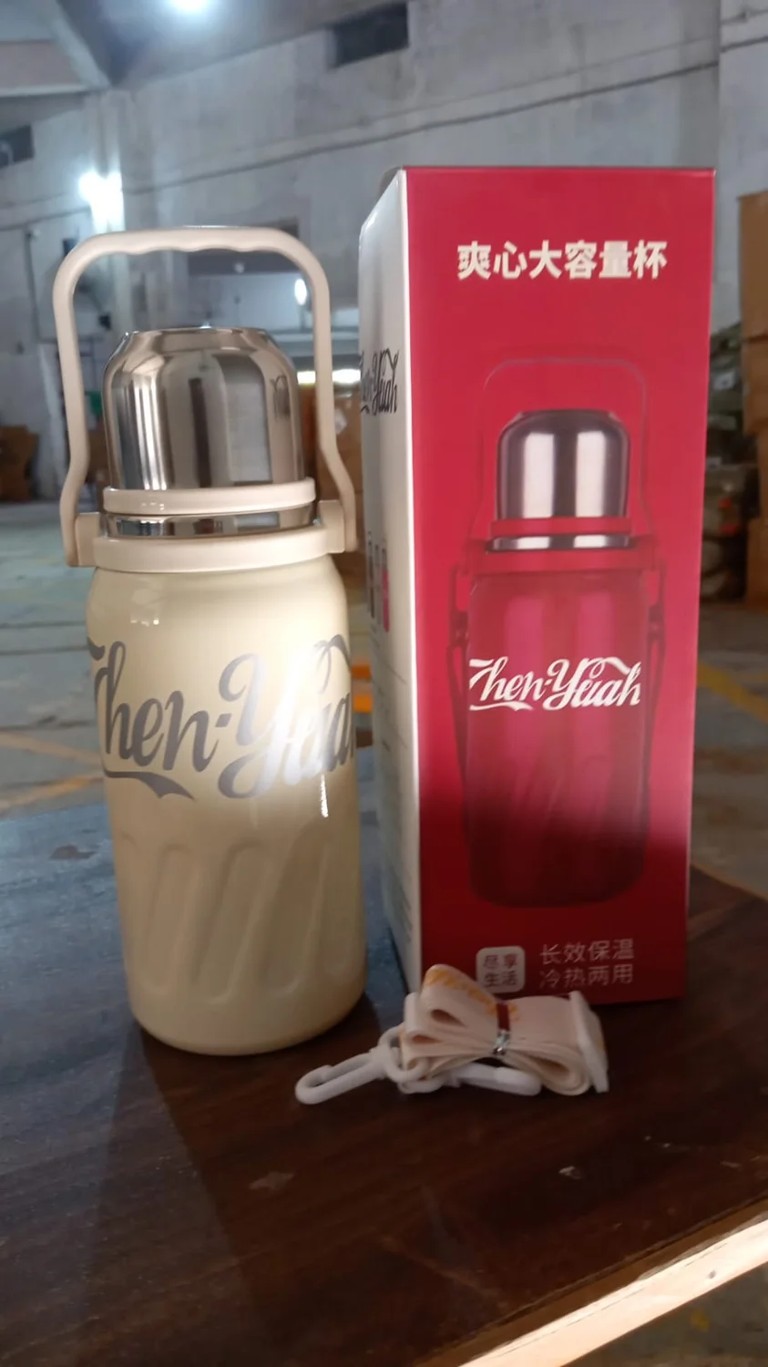 Stainless Steel Vacuum Insulated Water Bottle | Leak Proof Flask for Tea Coffee | Reusable Water Bottle with Hanging Strap & Handle | Bottle for Hot & Cold Drinks Wide Mouth Water Flask (1200 ML)