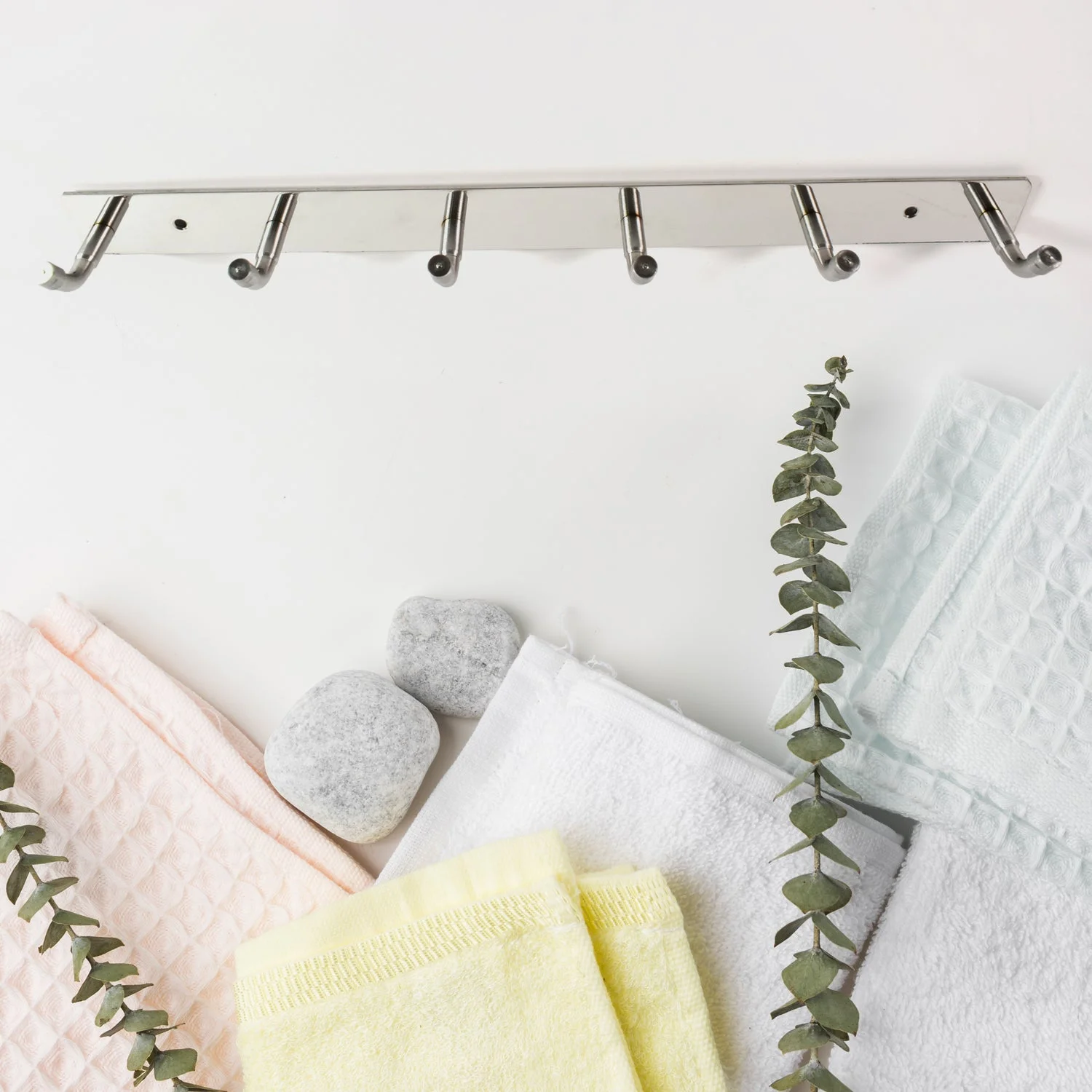 Organize your space efficiently with this premium Wall Mounted Stainless Steel 6-Hook Rack. Built with durable, rust-resistant stainless steel, it’s perfect for hanging towels, clothes, coats, bags, and kitchen utensils. Its minimalist design complements modern home décor, and the compact size makes it suitable for any room including bedroom, bathroom, entryway, or kitchen. Comes with screws and wall plugs for easy installation.
