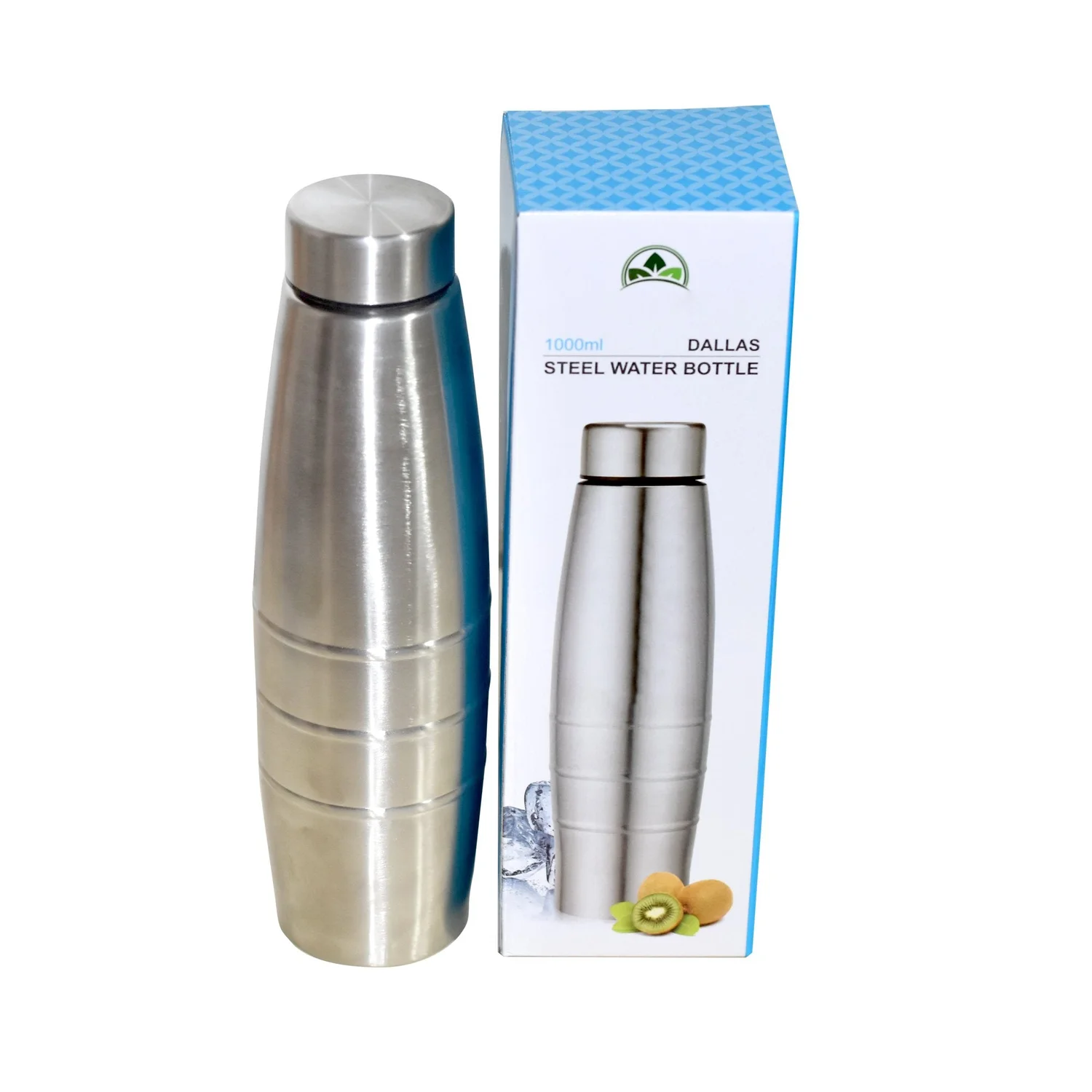 This bottles has been constructed with a stainless steel body which is lauded for its durability. The material is also free from heavy metals, making the bottles a safe choice for storing drinking water for a long period of time , Thermo Steel , ss bottle