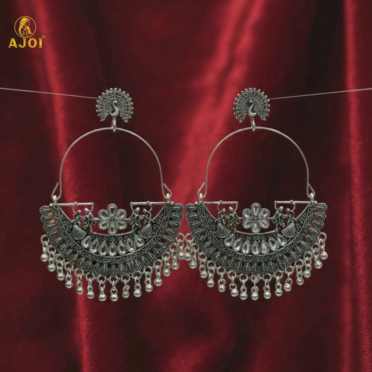 Be the first to review Statement Oxidized Silver Peacock Arch Earrings with Intricate Handcrafted Detailing!